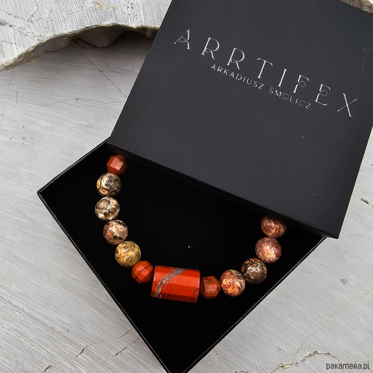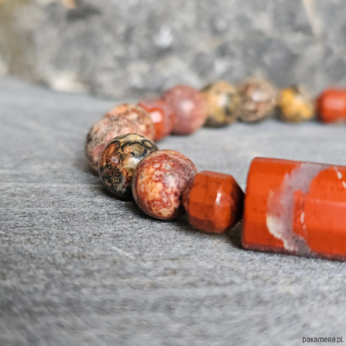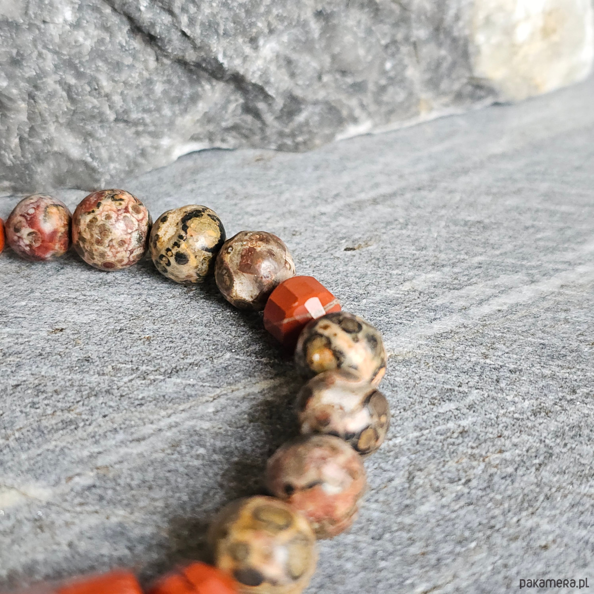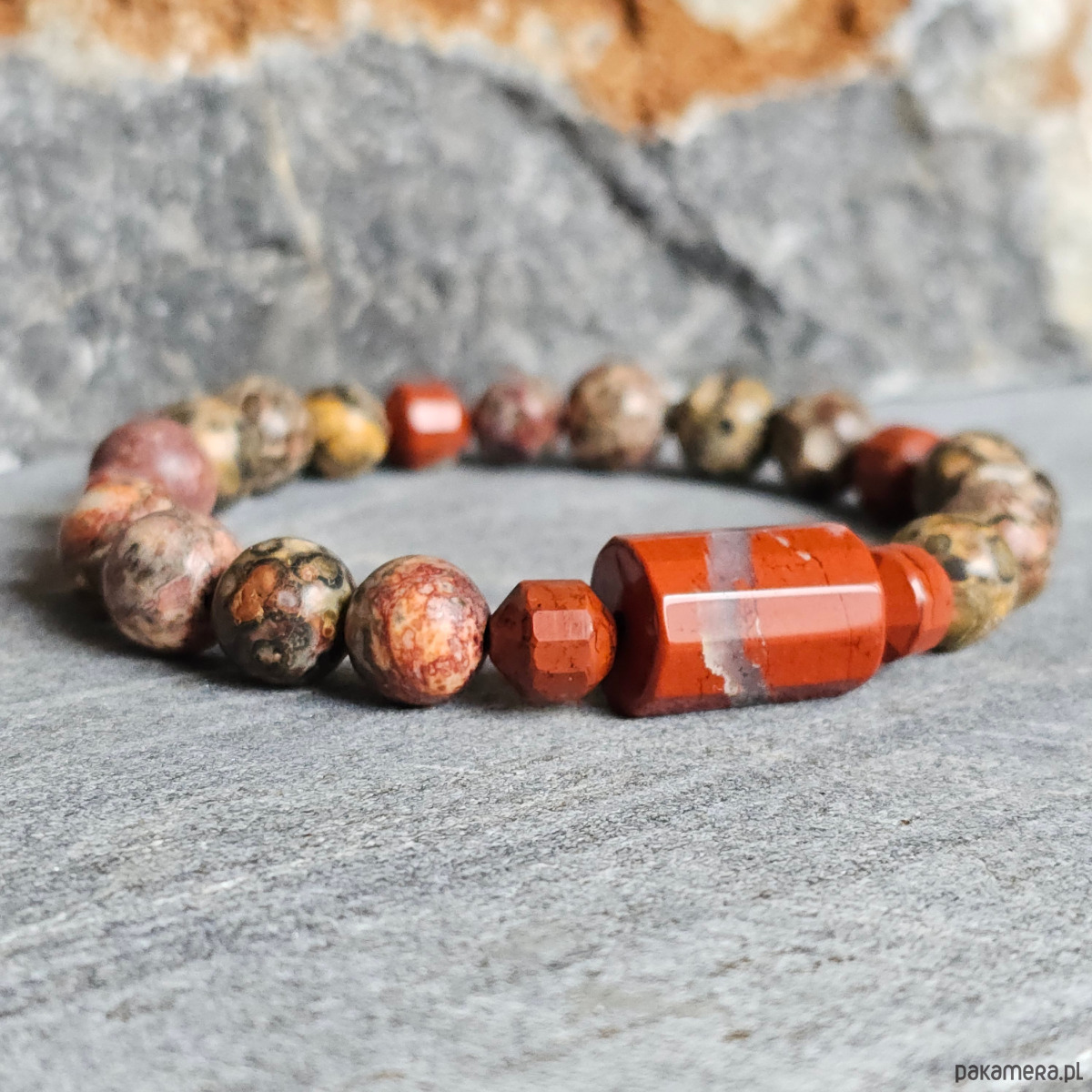 Męska ekstrawagancka bransoletka / Jaspis Leopardzi / Czerwony Japis