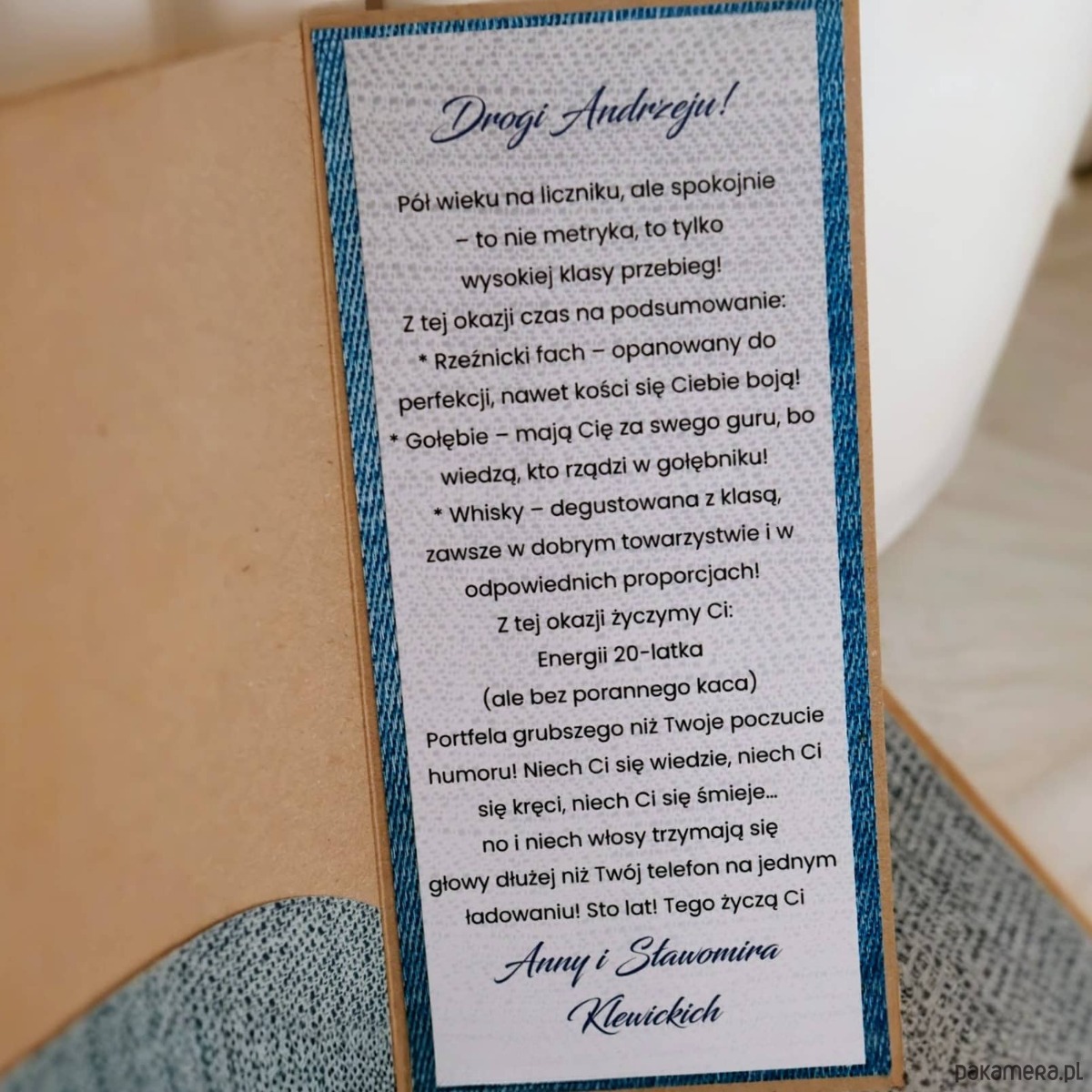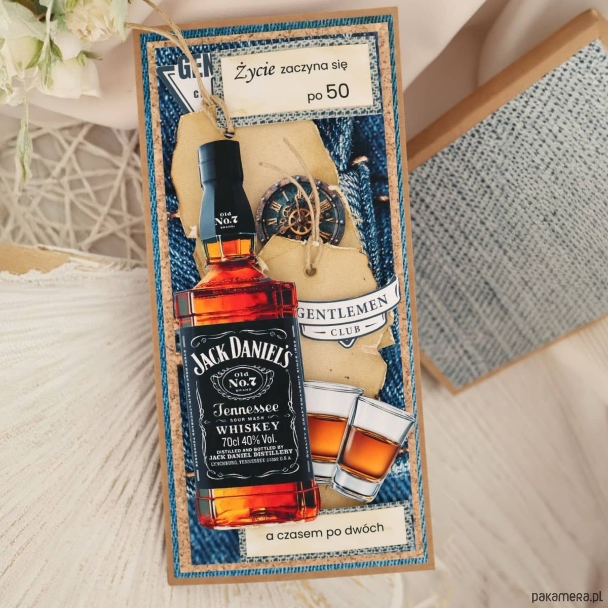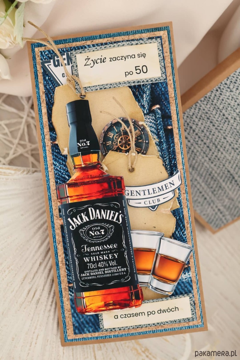Szukasz prezentu na 50 urodziny dla mężczyzny z poczuciem humoru? Ta kartka w pudełku z motywem whisky i zabawnym tekstem to idealny wybór.
