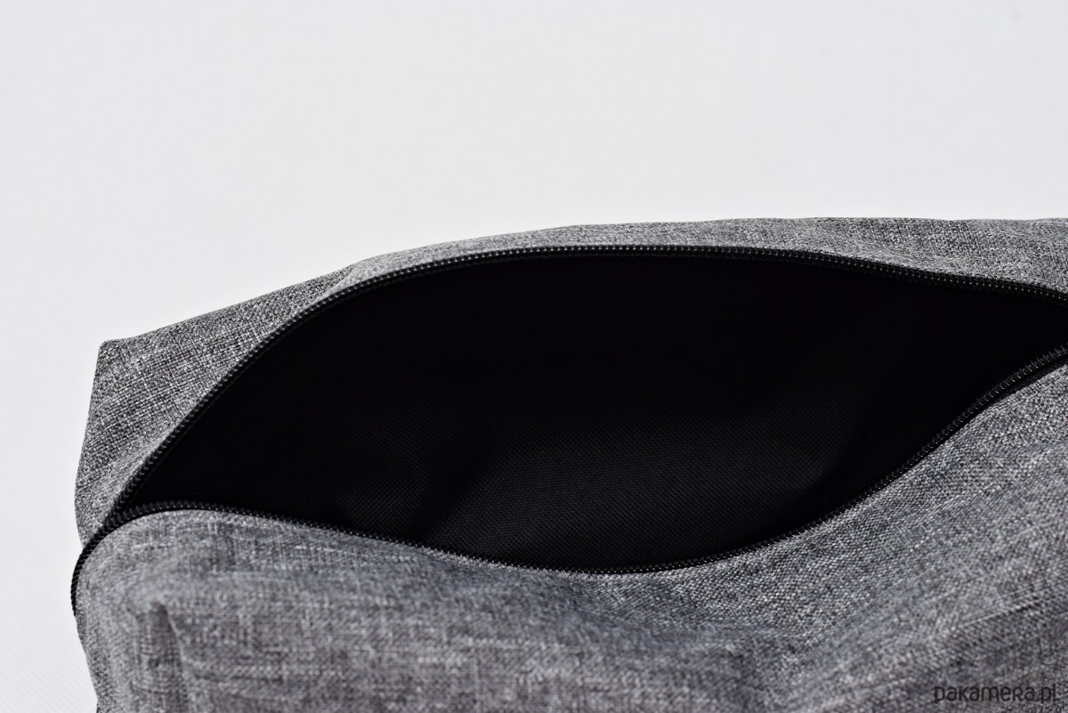 Kosmetyczka uszyta z wodoodpornej tkaniny i wodoodpornej podszewki w kolorze czarnym.