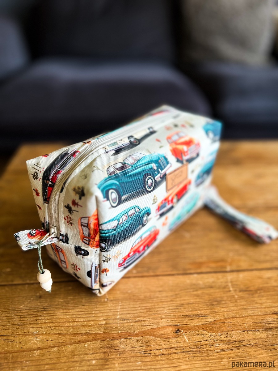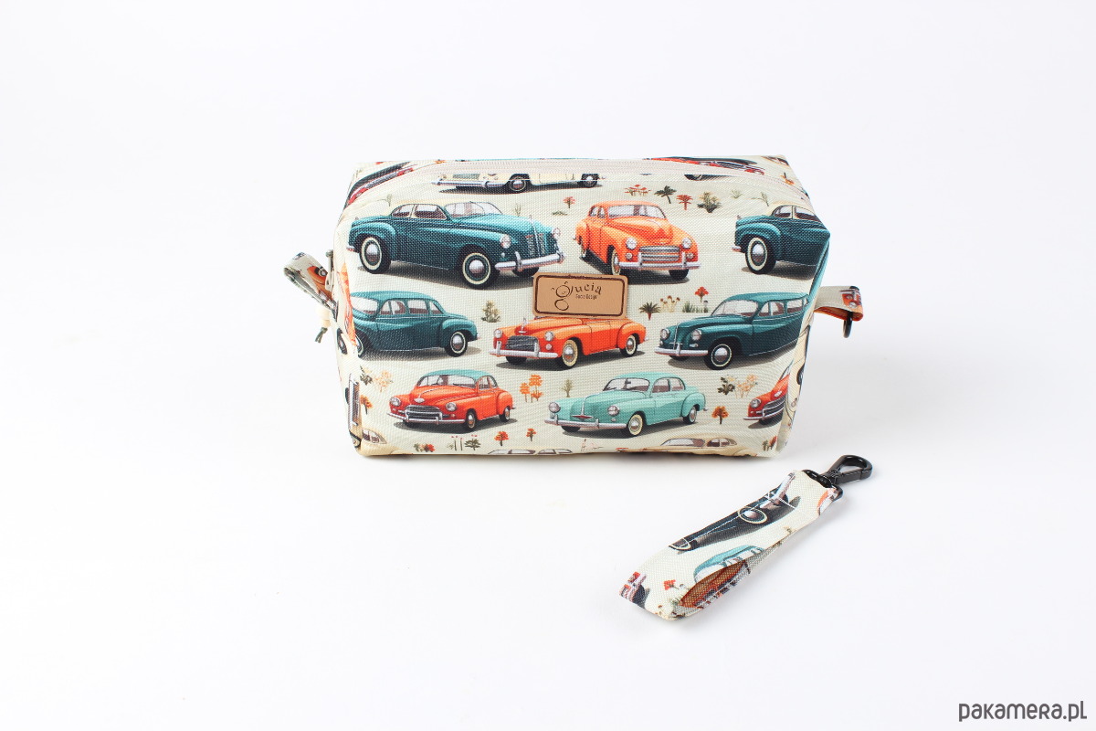 Męska kosmetyczka wodoodporna w retro auta z odpinaną zawieszką