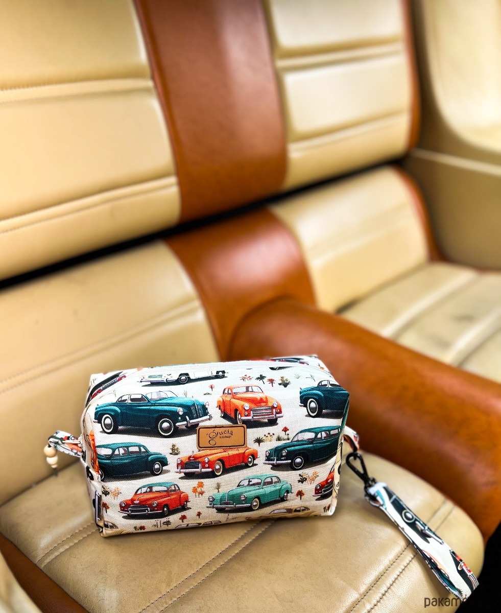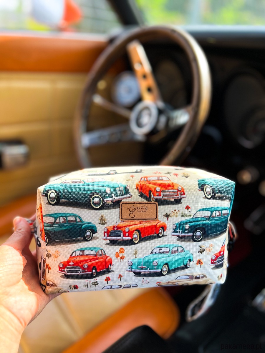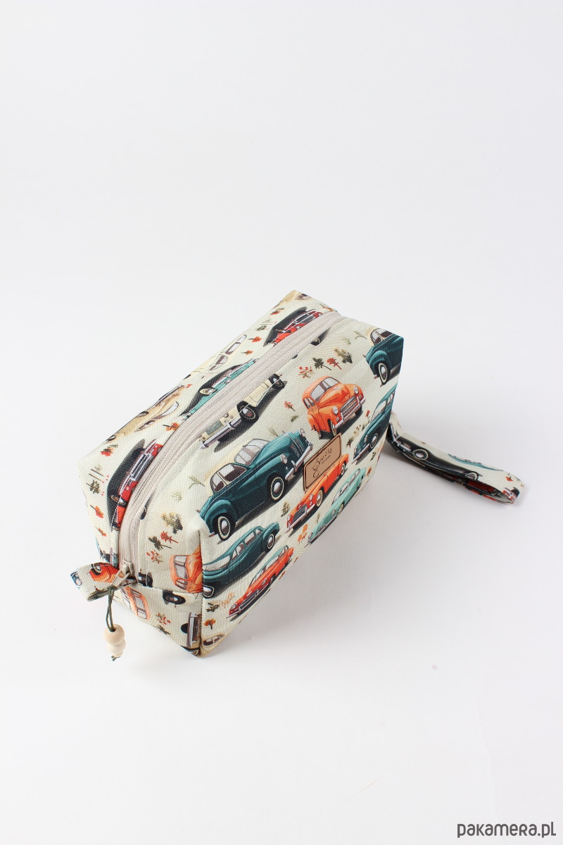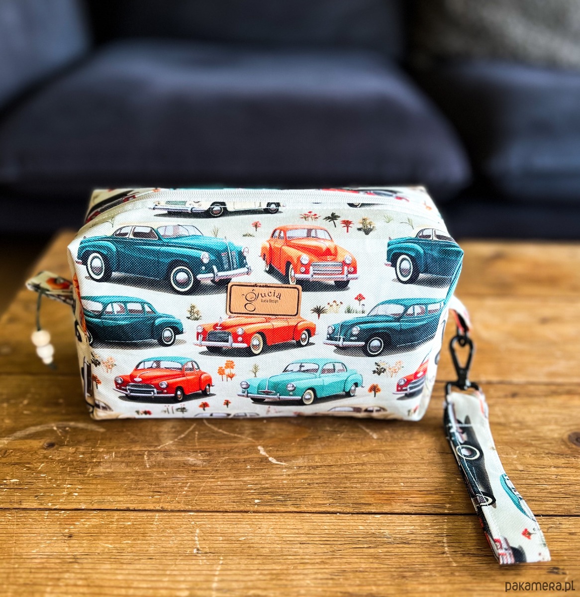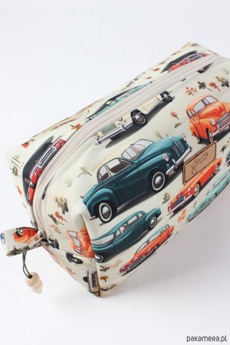 Stylowa i praktyczna kosmetyczka, która łączy w sobie funkcjonalność i wyjątkowy design. Uszyta z wodoodpornego materiału, świetnie sprawdzi się w podróży, na siłowni czy do codziennego użytku. Ozdobiona printem w stare samochody retro – idealna propozycja dla miłośników motoryzacji i klimatu vintage.
