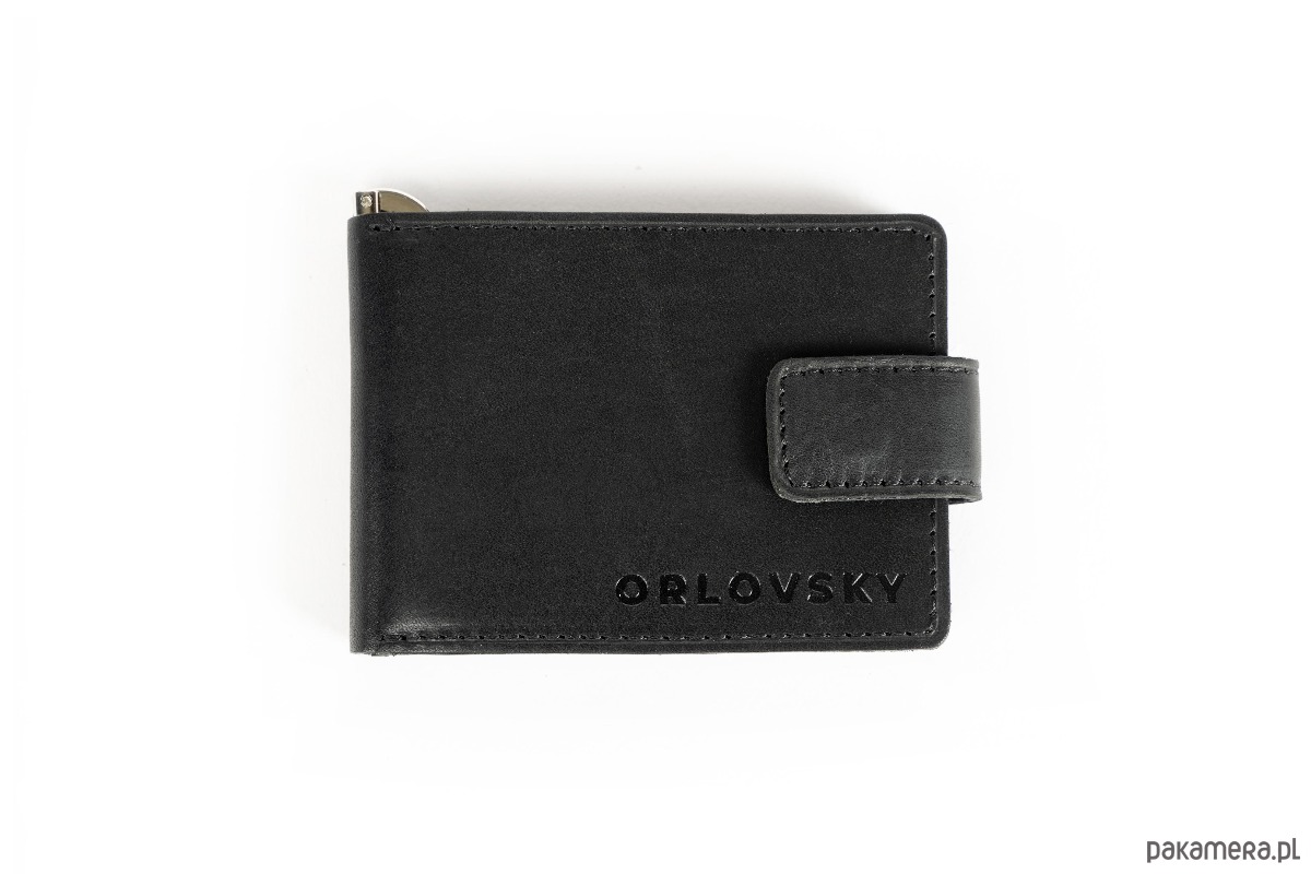 Męski czarny portfel slimwallet ORLOVSKY W04 z klipsem na banknoty