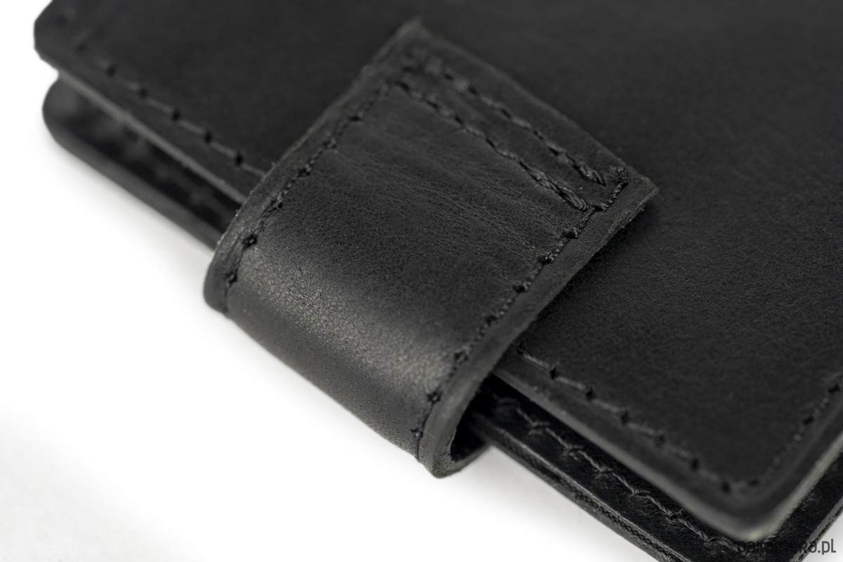 Aby portfel był jeszcze bardziej praktyczny, został zamykany klasycznym zatrzaskiem. Dzięki temu możesz mieć pewność, że Twoje cenne dokumenty oraz pieniądze będą bezpiecznie przechowywane.