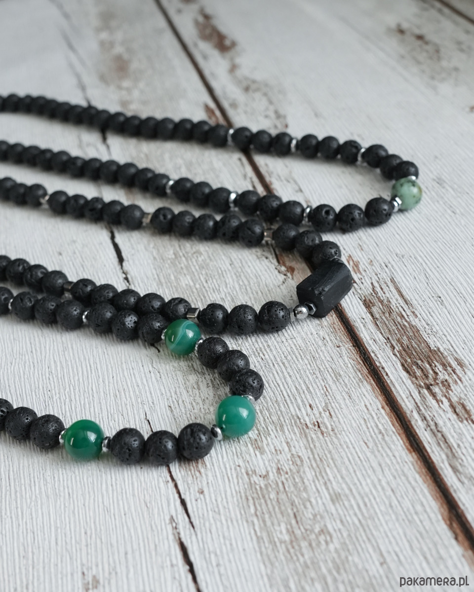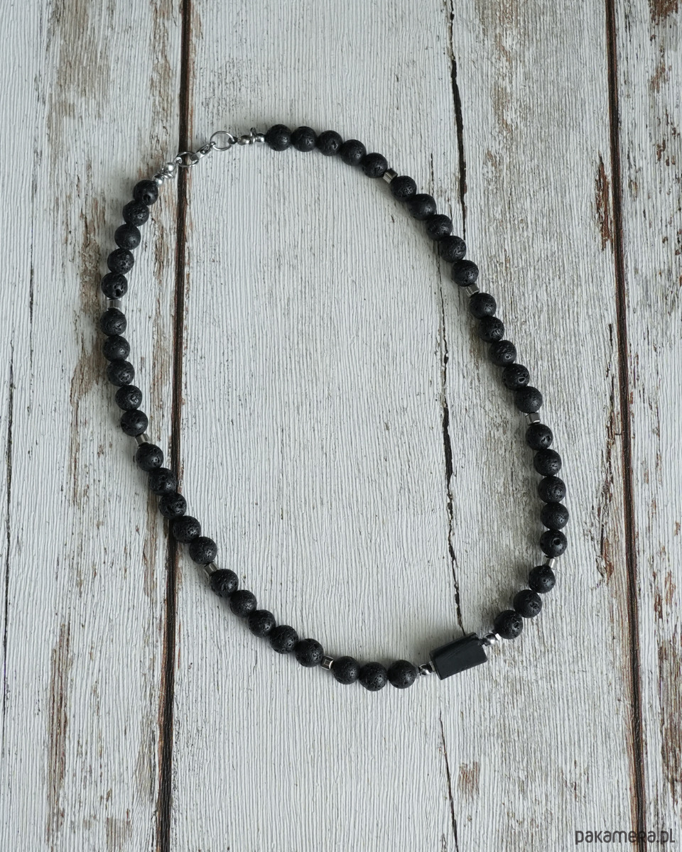 Męski krótki naszyjnik z lawy z turmalinem