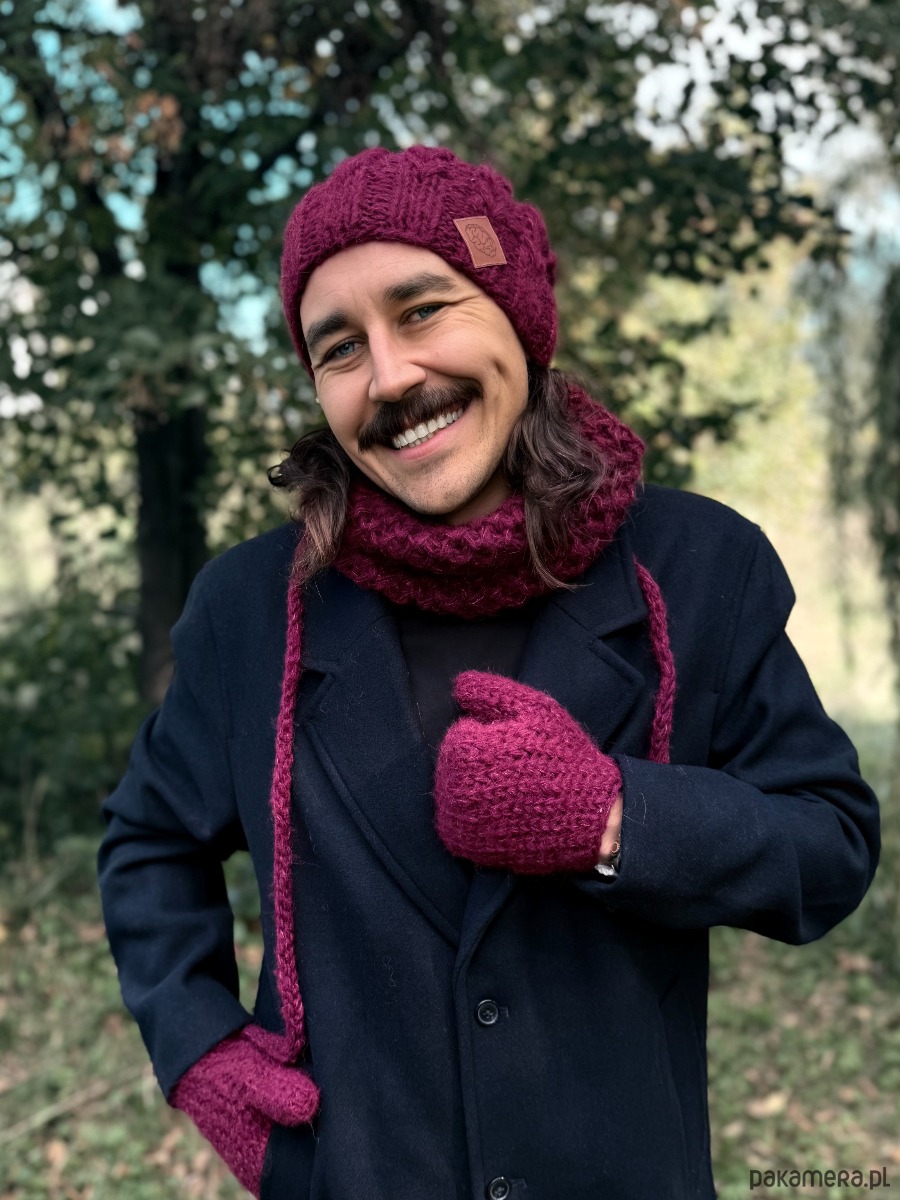 Ręcznie robiony przez poznańskie Seniorki z przędzy premium – 86% merino, 11% alpaki i 3% jedwabiu. Ta mieszanka to ciepło, miękkość i duża dawka luksusu w codziennej formie.