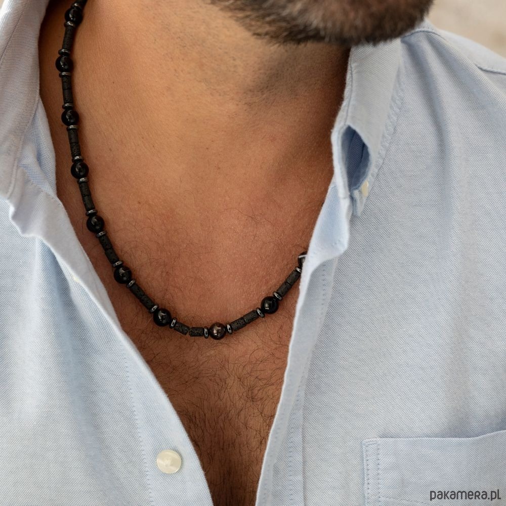Całość dopełnia Czarny Turmalin, wzmacniający pewność siebie i odporność psychiczną, Hematyt, który dodaje siły fizycznej i mentalnej, oraz Lawa Wulkaniczna – kamień mocy, odrodzenia i pierwotnej energii natury. Lawa oczyszcza, dodaje siły witalnej i pomaga wprowadzać pozytywne zmiany.