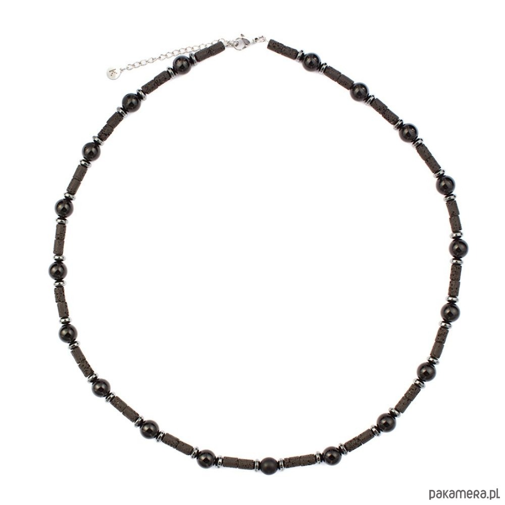 Wymiary: Kamienie: Lawa Wulkaniczna/Onyks/Turmalin Czarny/HematytWielkość kamieni: ok.6x5mm/8mm/8mm/ok.2x5mmDługość: ok. 55 cm + 5 cm regulacji Blaszka z logo: 6mm