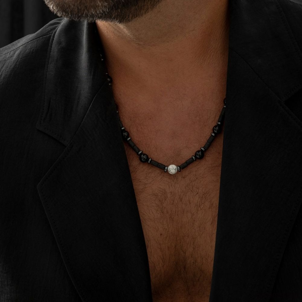 Męski naszyjnik zodiakalny Waga to wyjątkowy talizman harmonii i równowagi, stworzony z naturalnych kamieni. Centralny Howlit symbolizuje spokój, wyciszenie i mądrość, wspierając Wagi w podejmowaniu trafnych decyzji i budowaniu wewnętrznej stabilności. Kamień ten pomaga redukować stres, sprzyja cierpliwości i pozwala otworzyć się na nowe perspektywy.