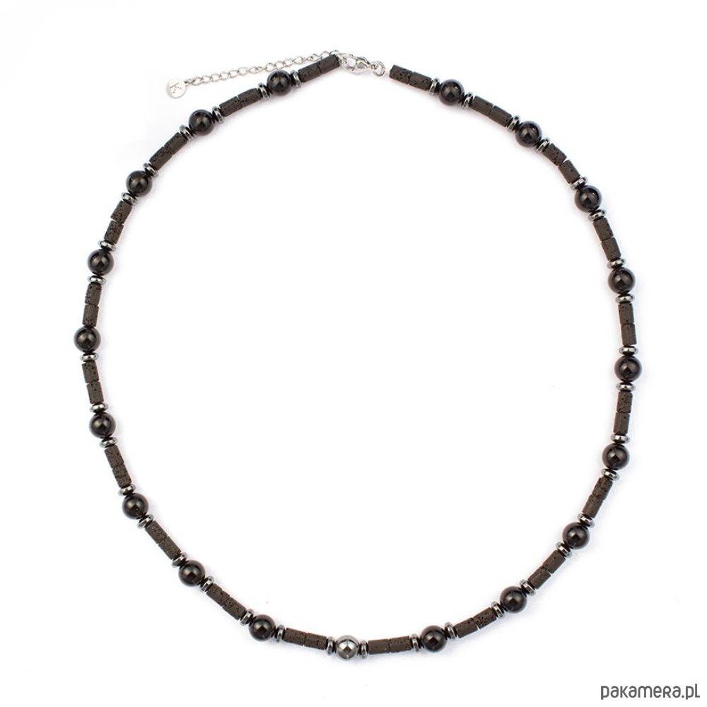 Wymiary: Kamienie: Lawa Wulkaniczna/Onyks/HematytWielkość kamieni: ok.6x5mm/8mm/ok.2x5mmDługość: ok. 55 cm + 5 cm regulacji Blaszka z logo: 6mm