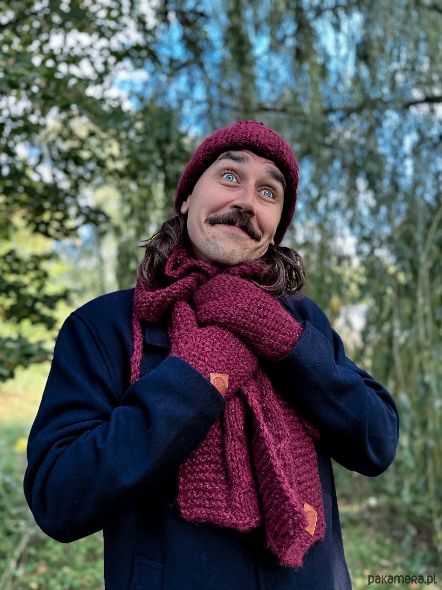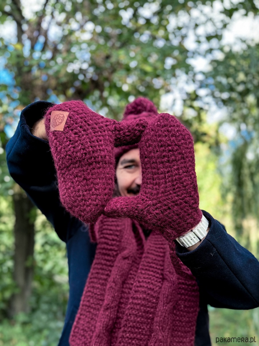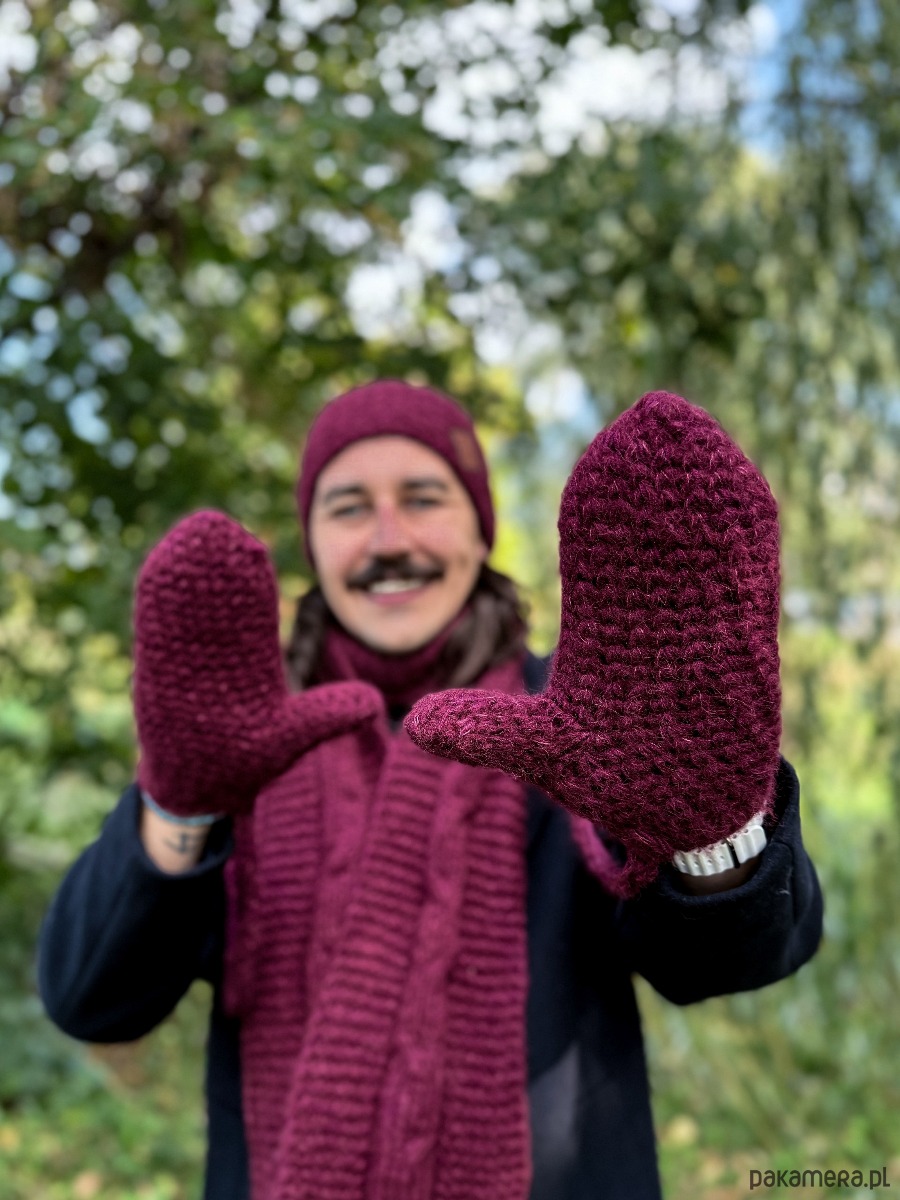 Rękawiczki zrobione ręcznie w Poznaniu przez Seniorki, które wkładają w swoją pracę całe serce. Skład? 86% merino, 11% alpaki i 3% jedwabiu – miękkość, ciepło i delikatność w jednym. Projekt prosty, praktyczny i przemyślany: dopasowany krój, wygodny sznureczek, który zapobiega zgubieniu drugiej rękawiczki, i jeden palec, żeby nie komplikować sprawy. Idealne na zimowe spacery, szybkie zakupy czy poranną kawę na mrozie.