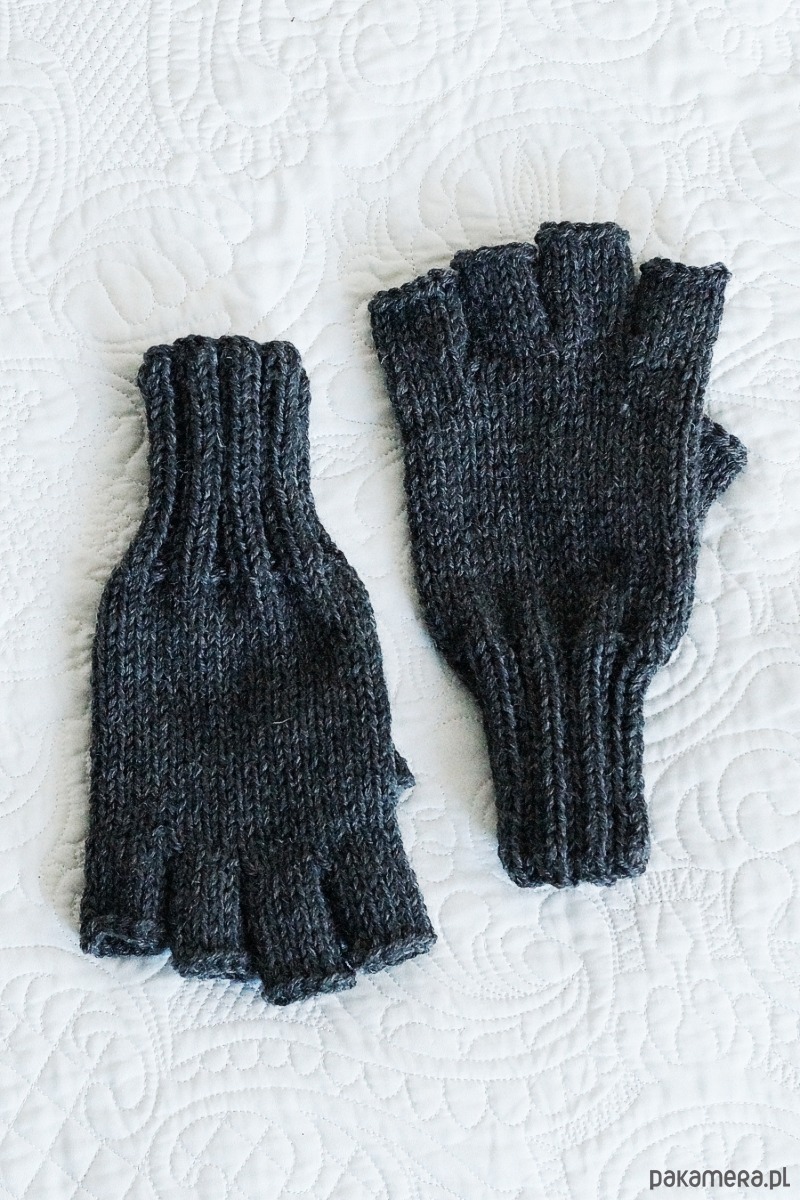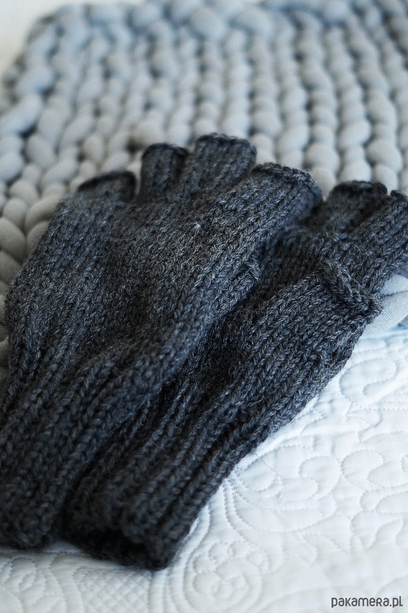 MĘSKIE, bezszwowe rękawiczki bez palców wykonane na drutach z doskonałej jakości włóczki