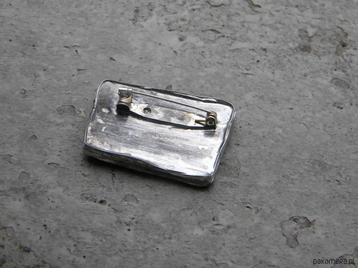 broszka ze szkła w oprawie z ocynowanej miedzi