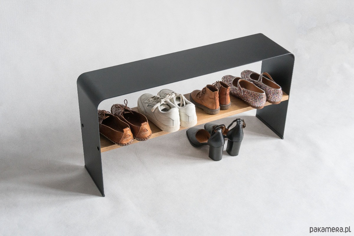 Metalowy stojak / ławka na buty z funkcją siadania, CZARNY
