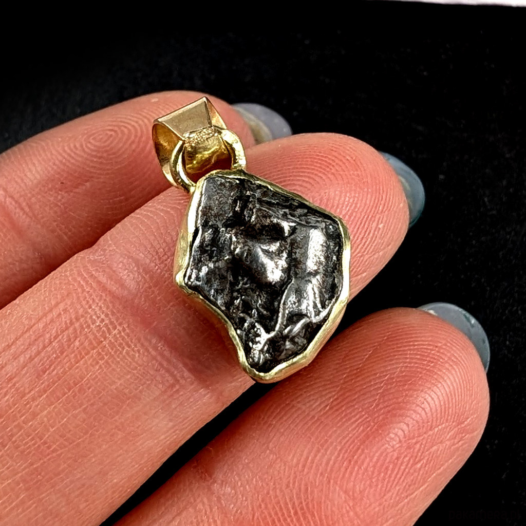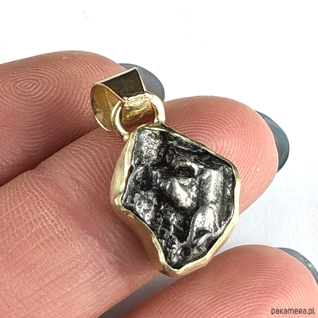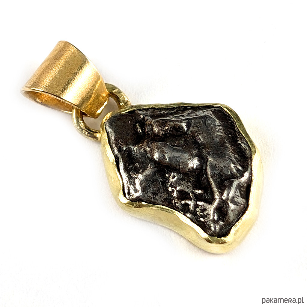 Niebanalny, bardzooryginalny wisiorek z oprawionym w złoto próby 585 meteorytem żelaznym Campo Del Cielo, który odnaleziono w 1576 roku w Argentynie. Do meteorytu dołączona jest metryka ze składem,datą spadku i wagą okazu. Niezwykły prezent dla niego lub dla niej. Wymiar oprawy 16x 12 mm. Długość z krawatką 33 mm. Waga wisiorka 3,67 g. Wisiorek zostanie zapakowany w ozdobne pudełeczko