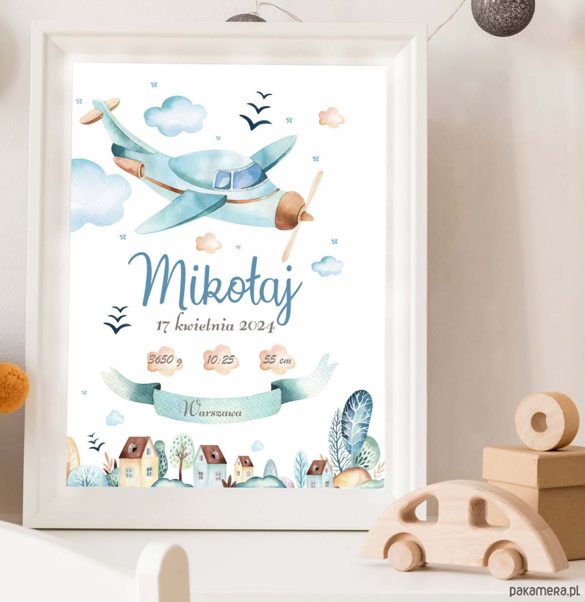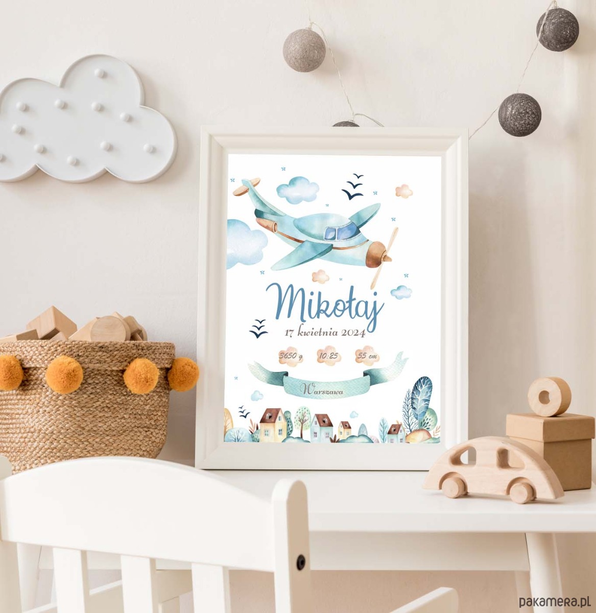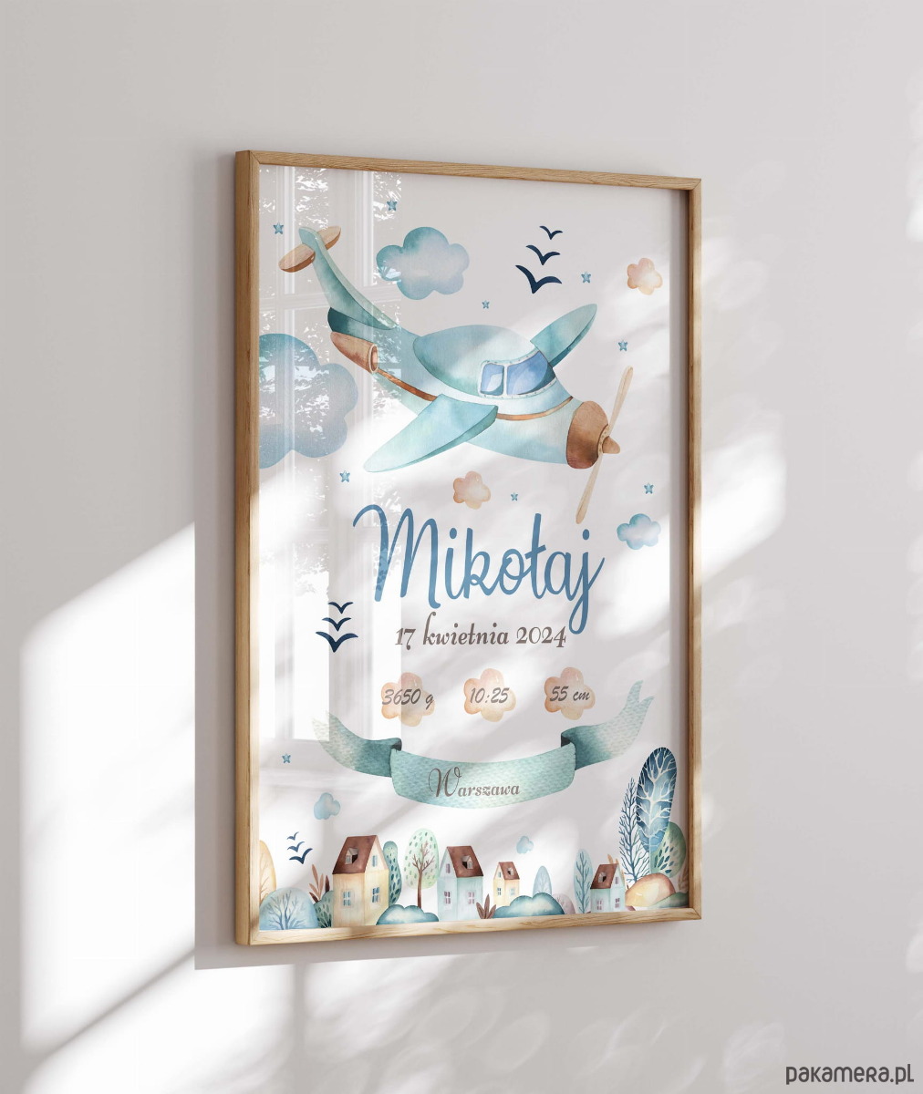 Metryczka samolot dla chłopca - Plakat na ścianę