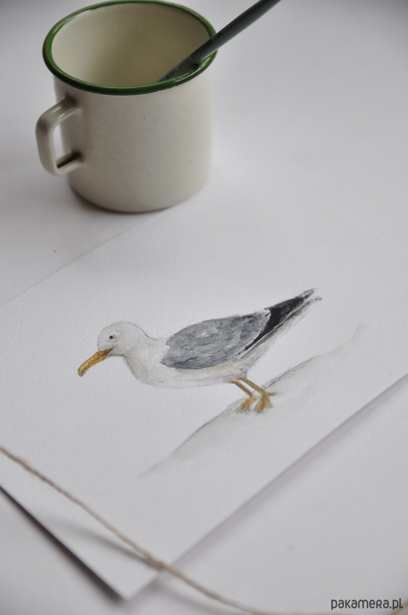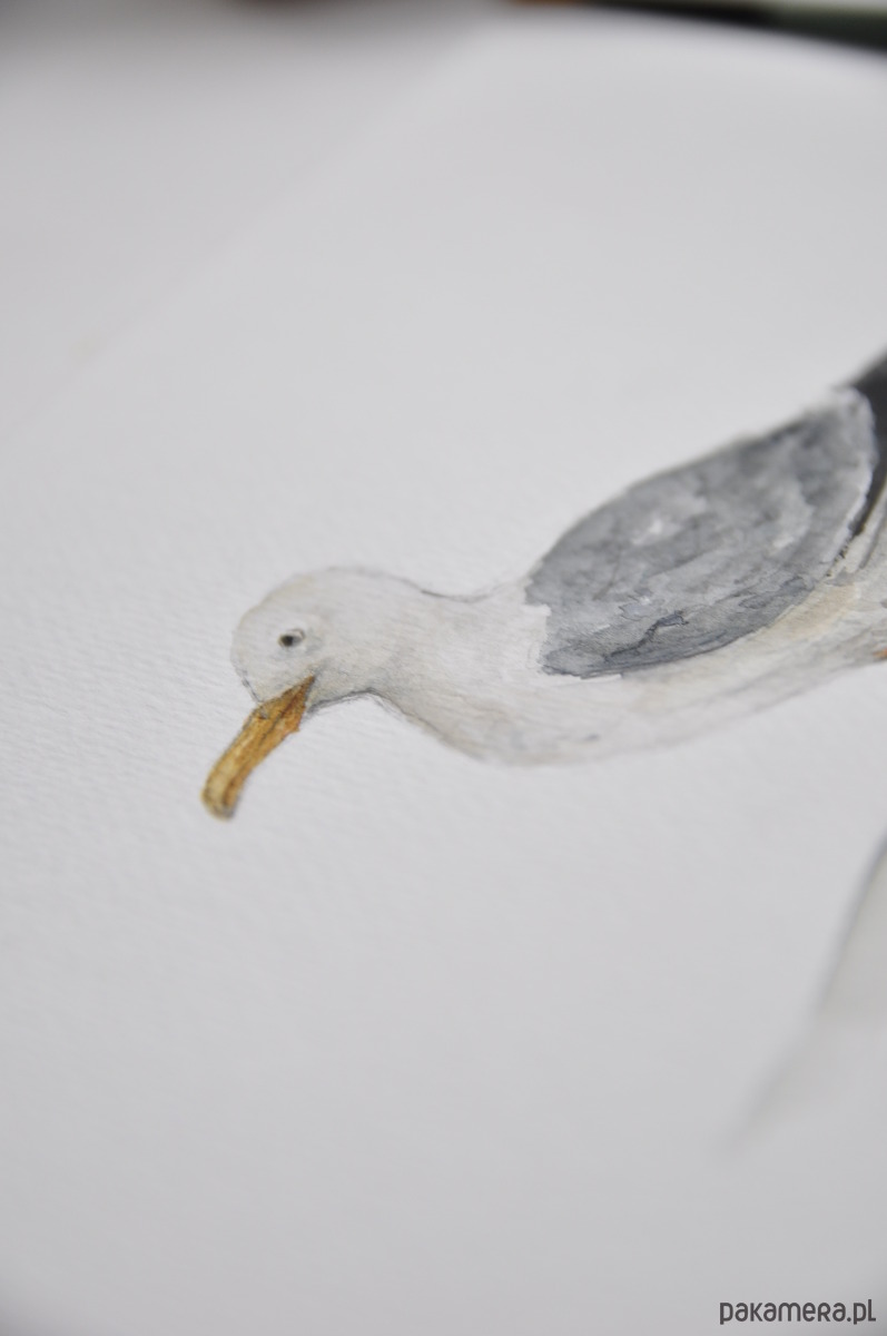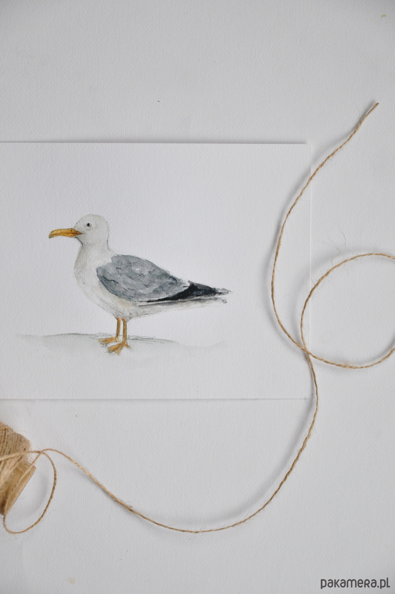 Ilustracja mewy wydrukowana na wysokiej jakości papierze z delikatną fakturą ala papier akwarelowy