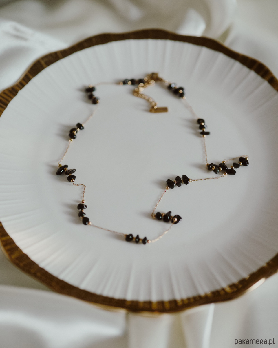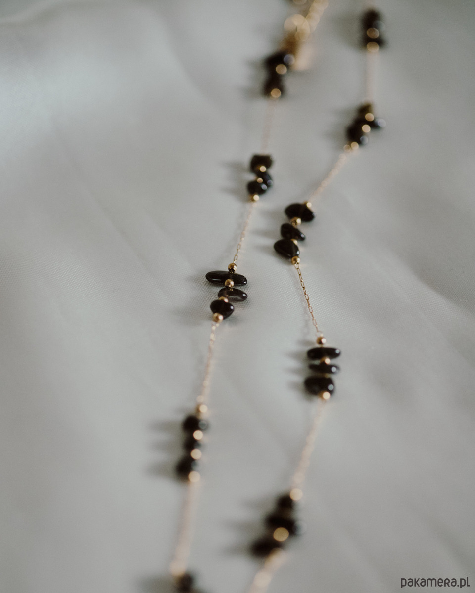 ᴍɢɪᴇᴌᴋᴀ to bardzo delikatny naszyjnik. Na drobniutki łańcuszek nawleczone są nieregularne bryłki kwarcu dymnego. Przepięknie podkreśla obojczyki i szyję. Polecany do bardziej eleganckich stylizacji. To bardzo klasyczny wzór, dlatego często wybierany jest na prezent.