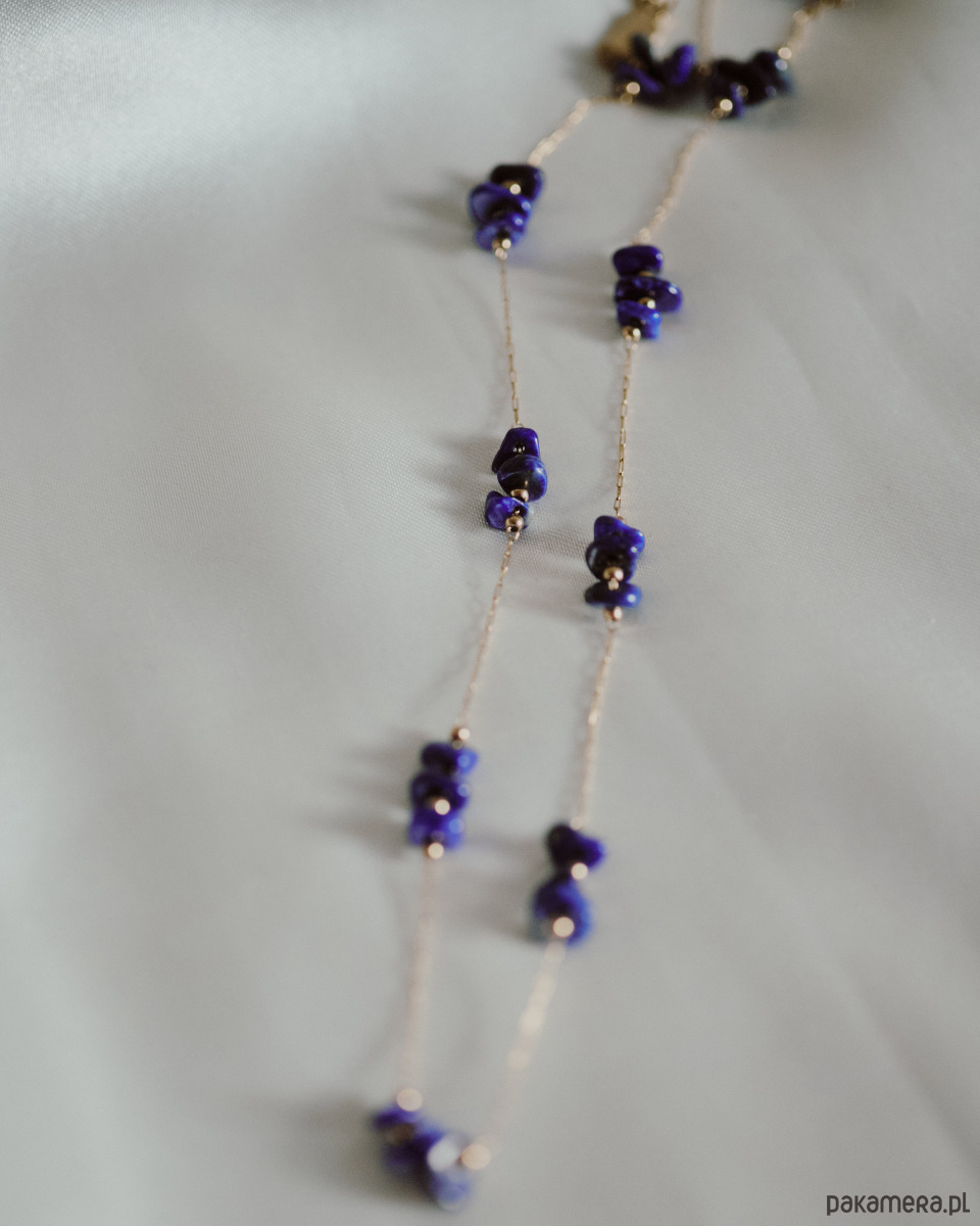 ᴍɢɪᴇᴌᴋᴀ to bardzo delikatny naszyjnik. Na drobniutki łańcuszek nawleczone są nieregularne bryłki lapis lazuli. Przepięknie podkreśla obojczyki i szyję. Polecany do bardziej eleganckich stylizacji. To bardzo klasyczny wzór, dlatego często wybierany jest na prezent.