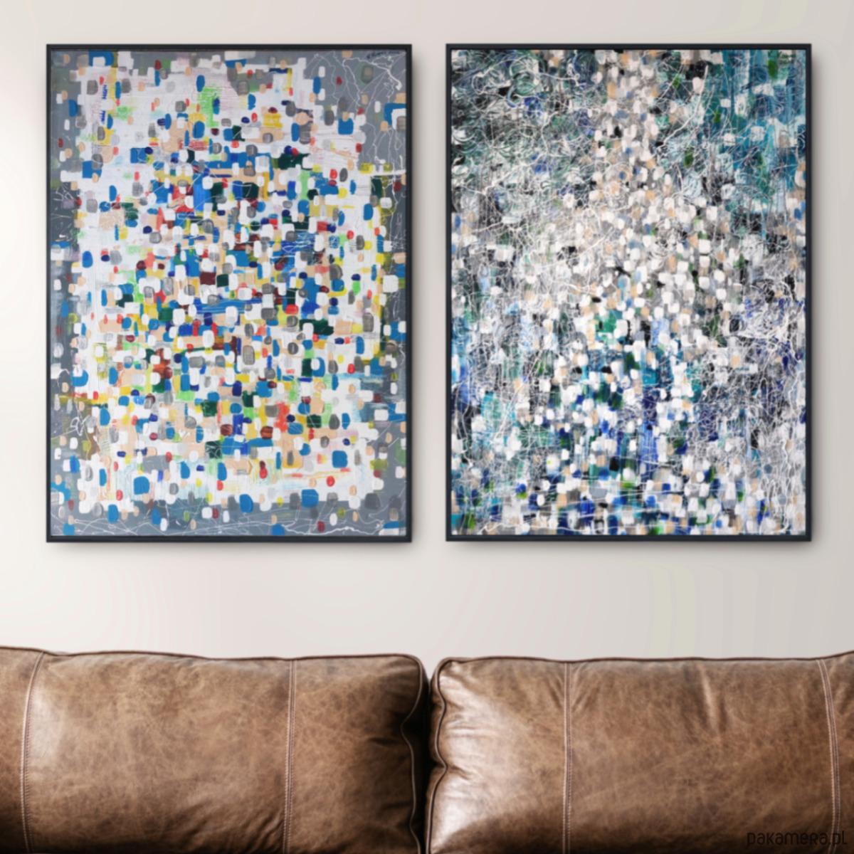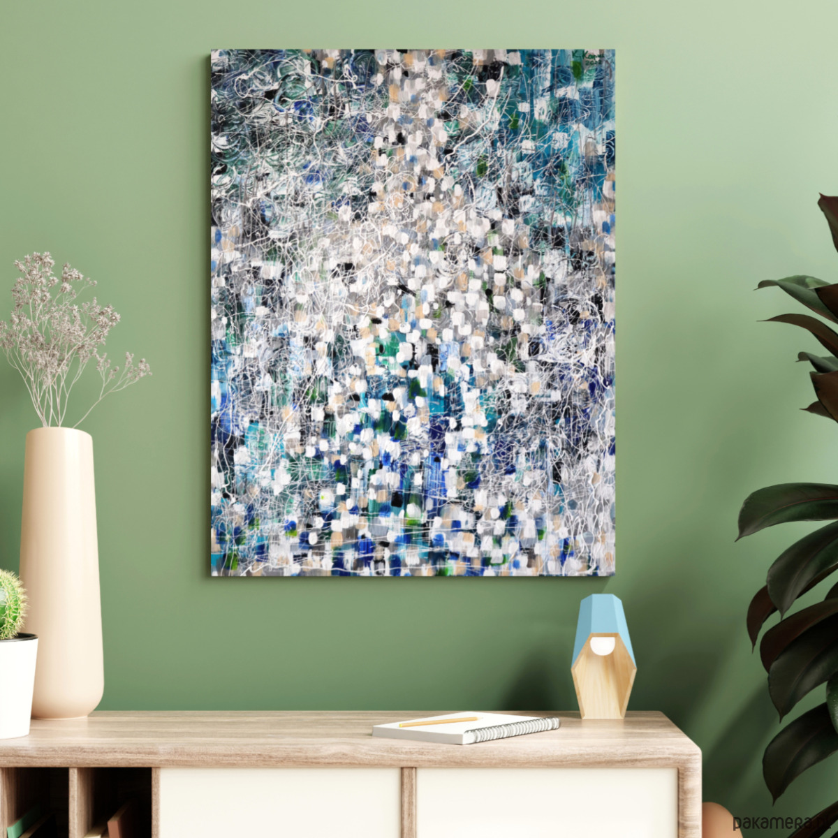 MGŁA wnosi aurę tajemnicy i uspokojenia. Ta abstrakcja utrzymana w barwach lasu, pełna przenikających się kolorów ziemi i detalu, ze smakiem dopełni przestrzeń. Będzie świetnie wyglądała zarówno na ciemniejszych, jak i jasnych ścianach, we wnętrzach białych, w stylu boho czy w naturalnych aranżacjach. Możesz od razu powiesić obraz w wybranym miejscu, bo nie wymaga ramy :)