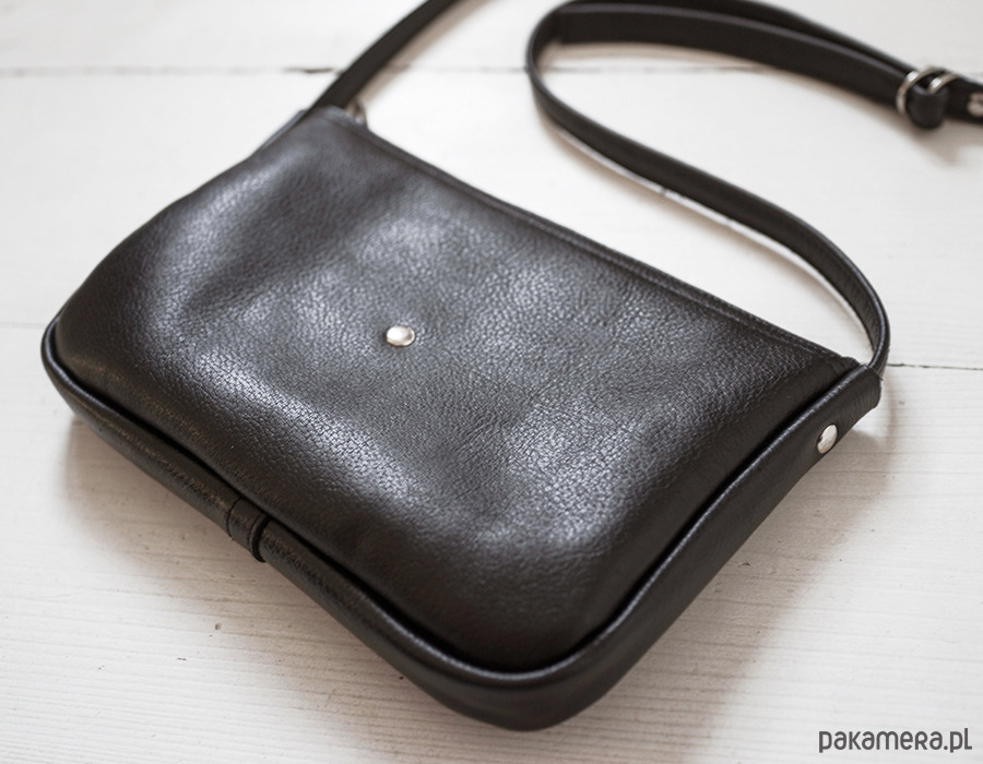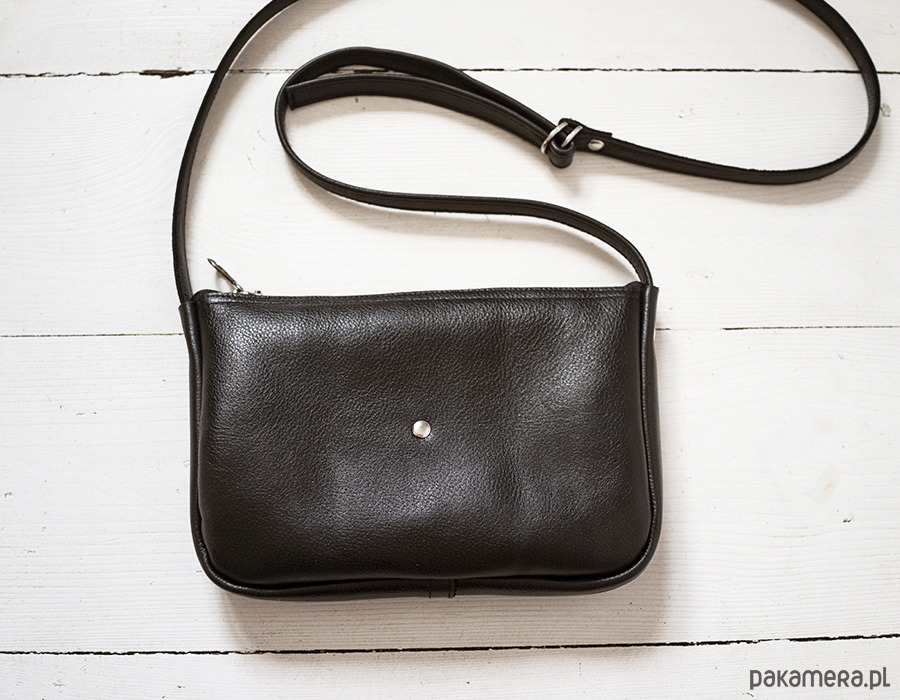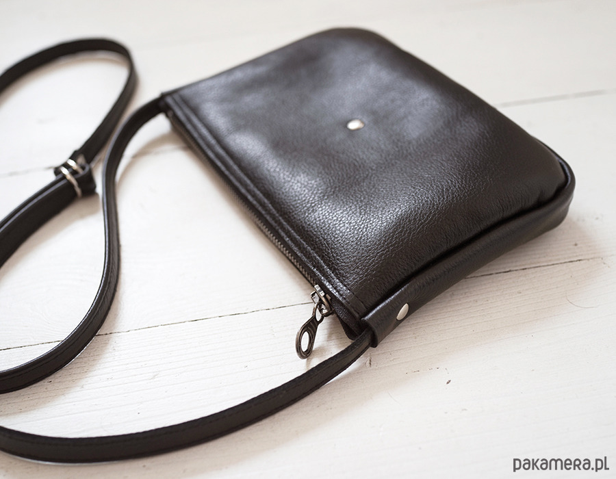 Mała zgrabna minimalistyczna torebka na ramię. Wykonana z wysoko-gatunkowej czarnej skóry. Torebka zamykana na zamek. Pasek regulowany do długości 125 cm (może być więcej na życzenie). Wymiary torebki: wys.14 cm, szer 21 cm gł 2,5 cm.