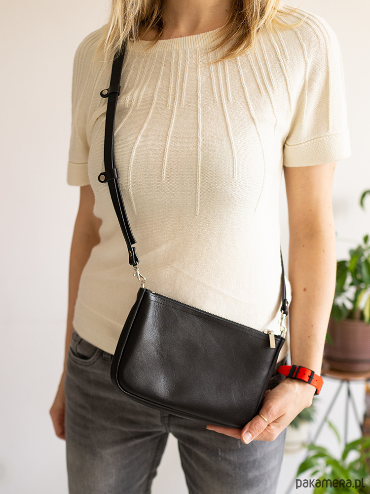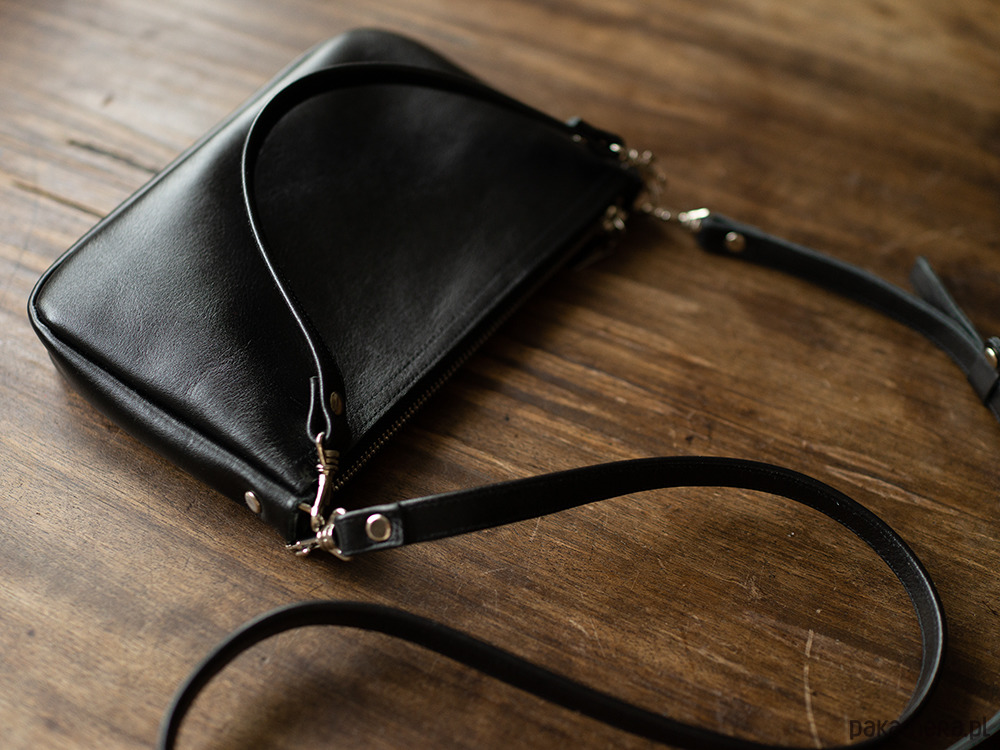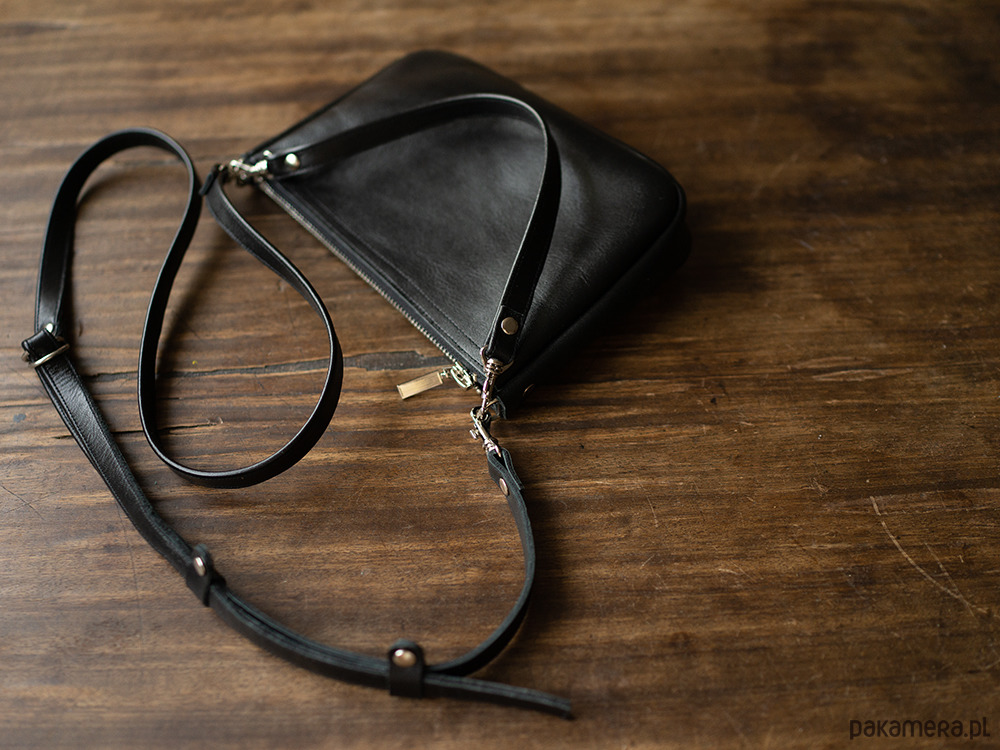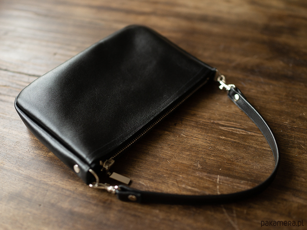 Mała zgrabna i praktyczna torebka na ramię. Wykonana z wysokogatunkowej naturalnej skóry w kolorze czarnym. Bez podszewki, środek to lewa strona skóry, zamszowa. Zamykana na zamek, dodatki w kolorze złotym lub srebrnym do wyboru. W zestawie dwa odpinane paski, na ramię i do ręki. Torebka sprawdzi się znakomicie na codzień oraz jako torebka na wieczór, z krótki m paskiem.