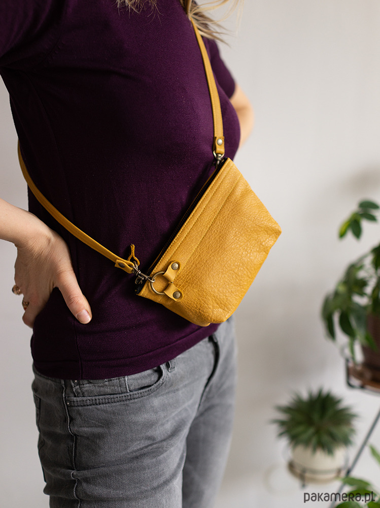 Mała zgrabna i praktyczna torebka na ramię. Wykonana z wysokogatunkowej żółtej musztardowej naturalnej skóry. Bez podszewki, środek to lewa strona skóry, zamszowa. Zamykana na zamek, dodatki w kolorze starego złota.