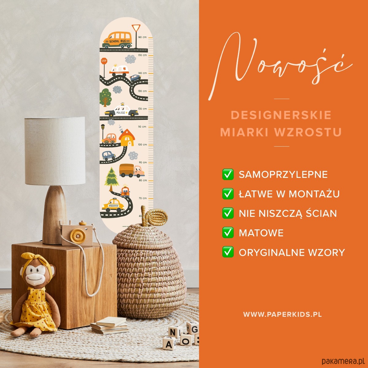 Designerska MIARKA WZROSTU dla dzieci to stylowa dekoracja dziecięcego pokoju oraz praktyczne narzędzie do pomiaru wzrostu Twojej pociechy. Idealny pomysł na prezent!