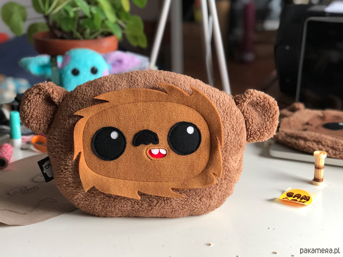 Ewokowa poducha ma około 30 cm szerokości. Doskonale odnajduje się w dziecięcych pokojach, świetnie prezentuje się na kanapach, fotelach i półkach. Testowana na dzieciach.