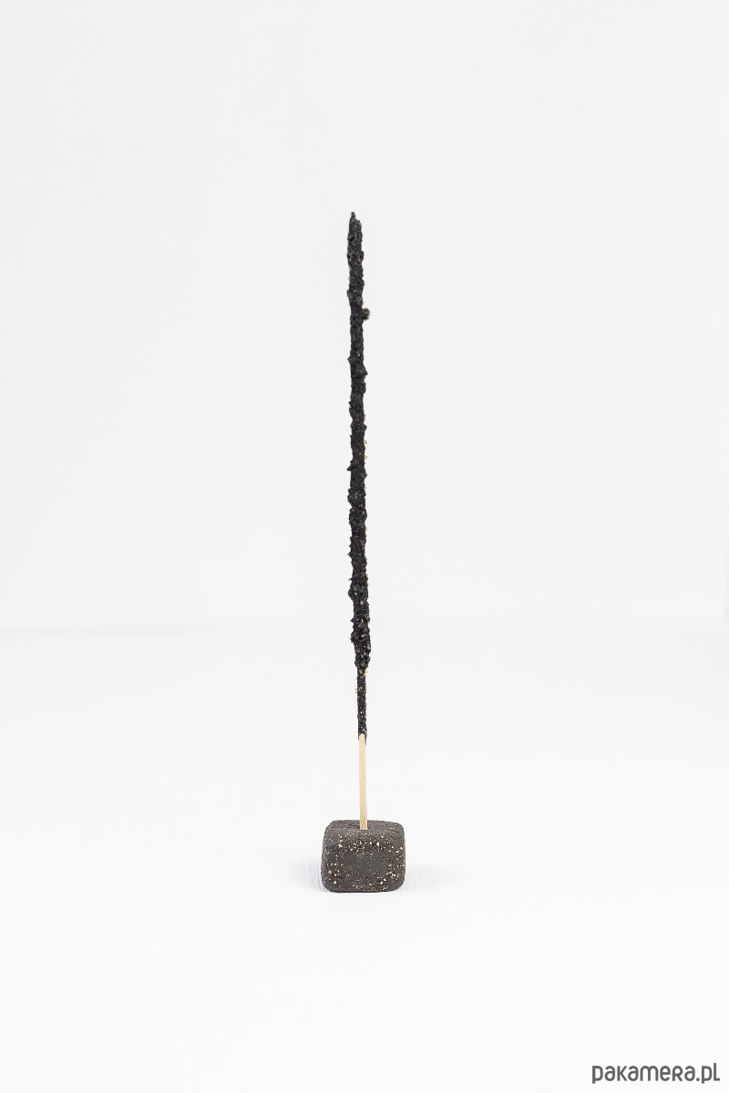 To punkt w przestrzeni, nie obiekt centralny. Minimalna ingerencja, maksymalne skupienie na czasie spalania, zapachu i powolnym zaniku.