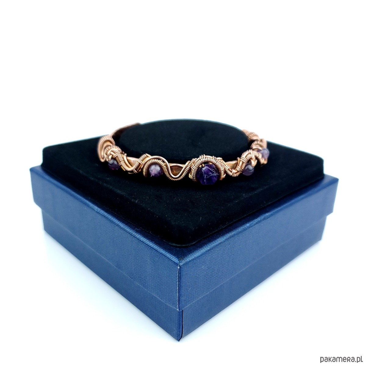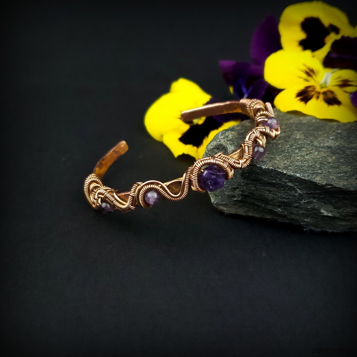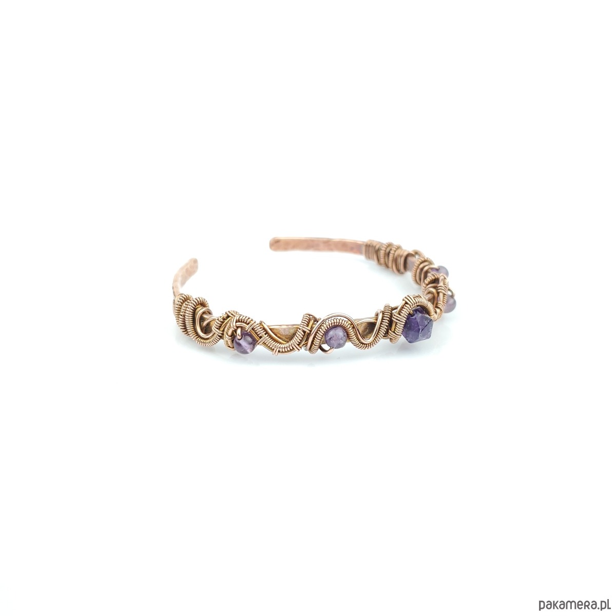 Miedziana bransoleta mankietowa z ametystem