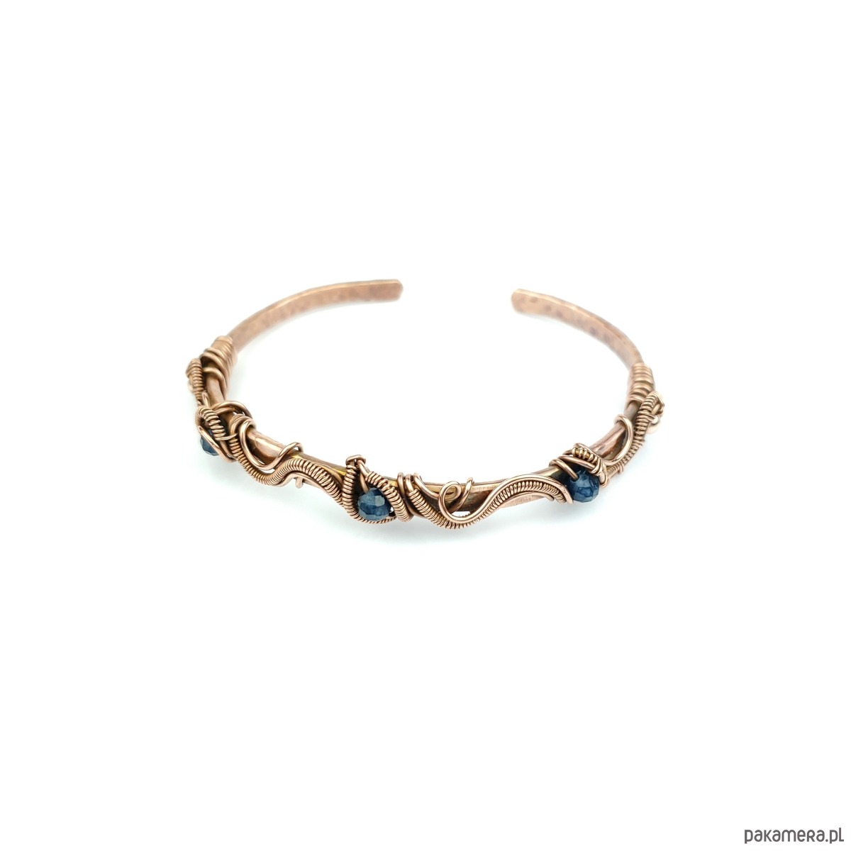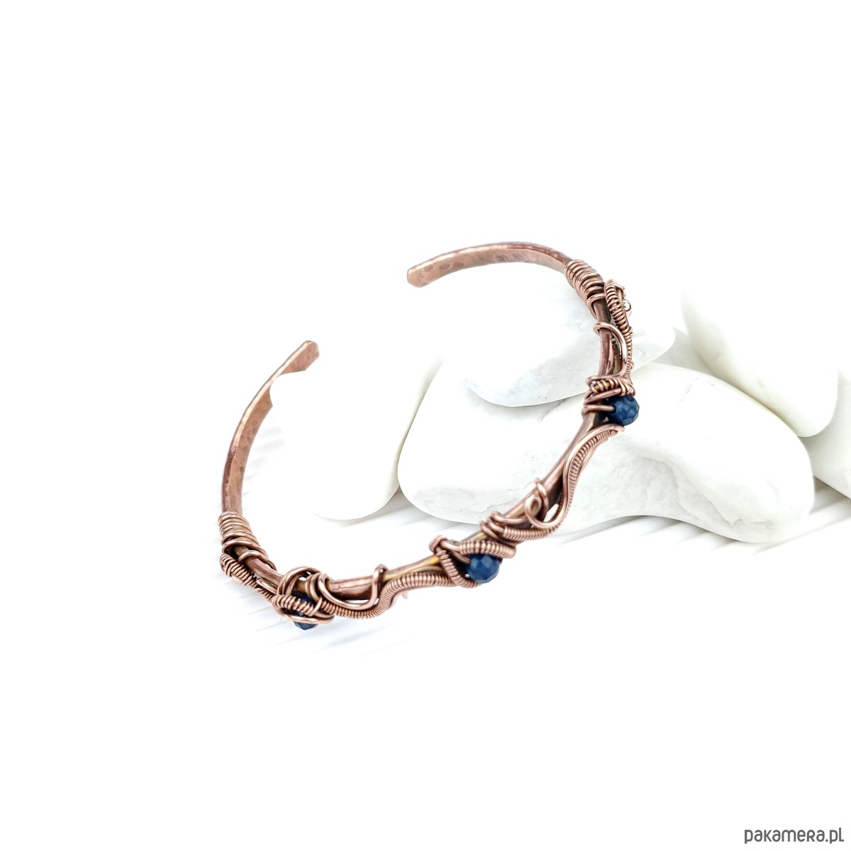 Miedziana bransoleta mankietowa z szafirami