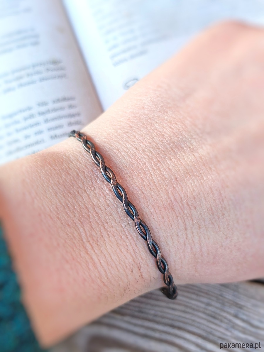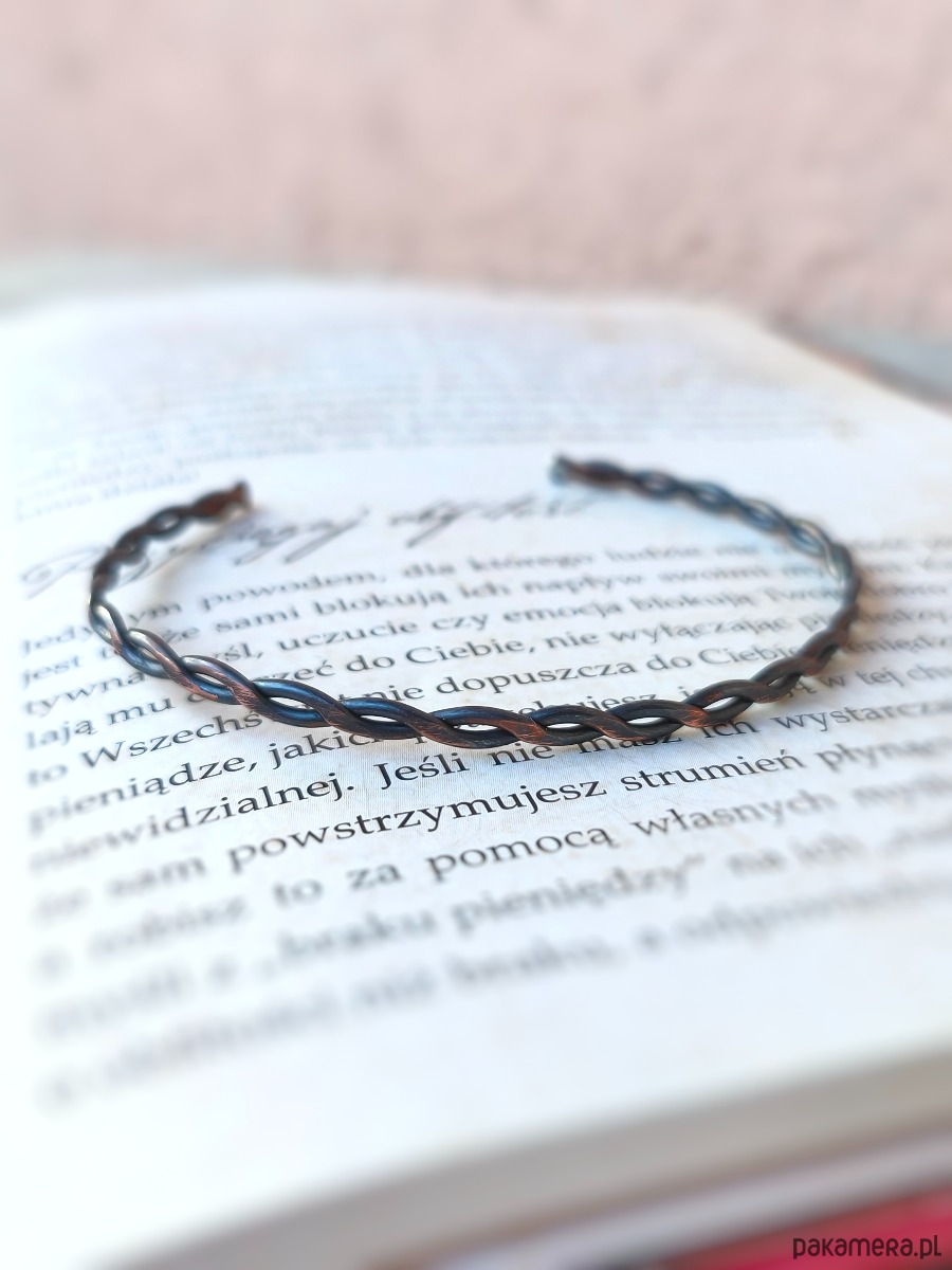 Miedź to metal o niezwykłych właściwościach przewodzących - nie tylko prąd, ale i intencje. Wierzy się, że skręcona struktura bransoletki działa jak antena dla pozytywnych wibracji, pomagając harmonizować przepływ energii w ciele. Ciemna, głęboka oksydacja nadaje jej szlachetny wygląd przedmiotu z duszą, który z czasem nabiera jeszcze większego charakteru, reagując na dotyk i styl życia właściciela.