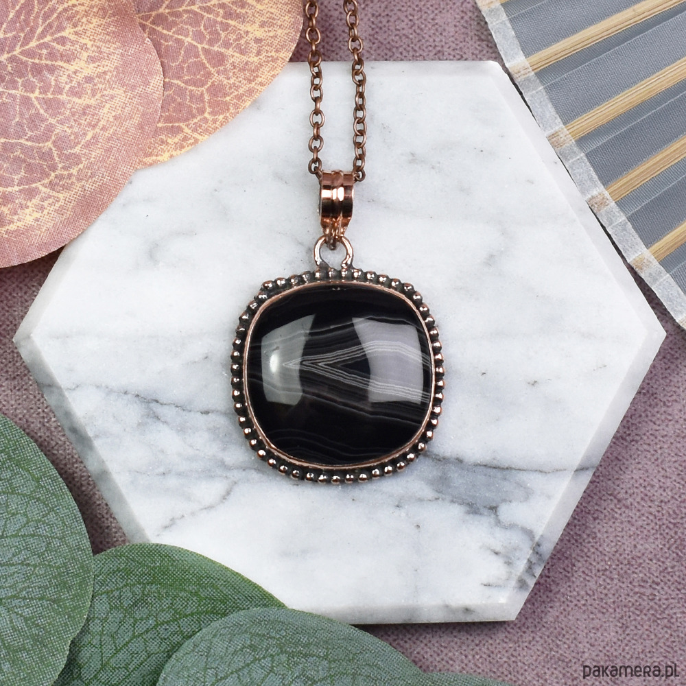Elegancki wisiorek z miedzią i agatem z Botswany to wyjątkowy dodatek do Twojej biżuterii. Kamień ten, o subtelnym odcieniu i pięknym wzorze, jest kojarzony z harmonią i równowagą. Jego właściwości sprzyjają wzmocnieniu wewnętrznego spokoju oraz pobudzeniu kreatywności, stanowiąc nie tylko ozdobę, lecz także talizman pozytywnej energii.