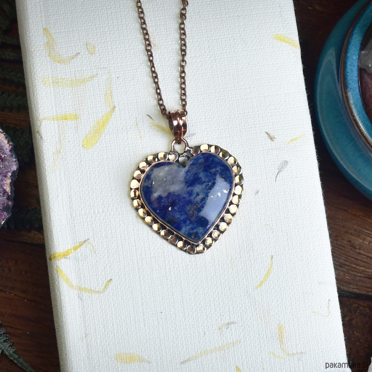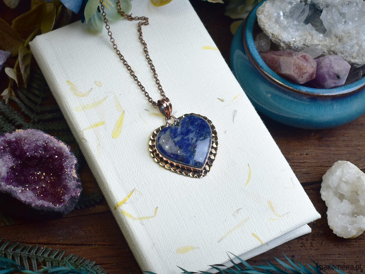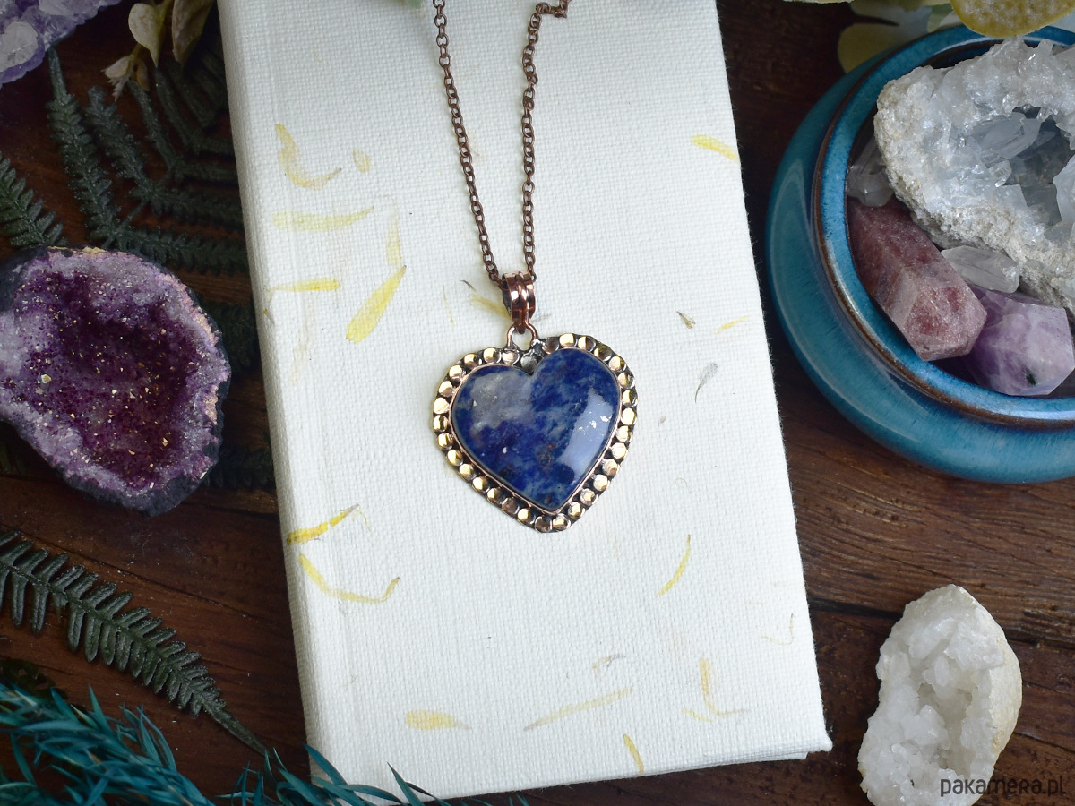 Miedziany ozdobny wisiorek z sodalitem w kształcie serca