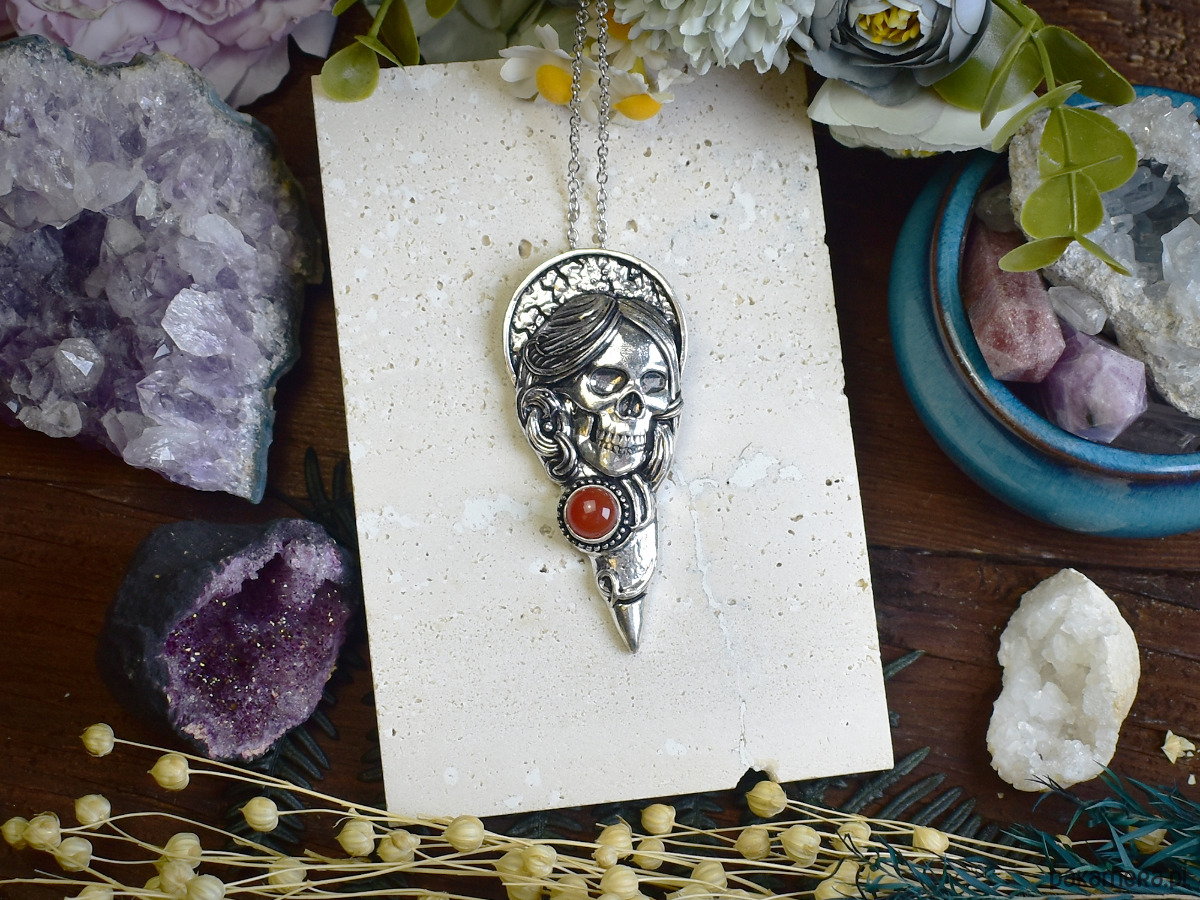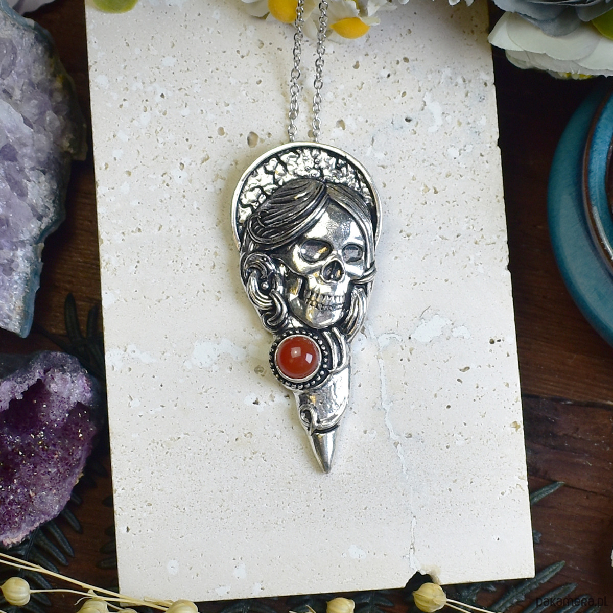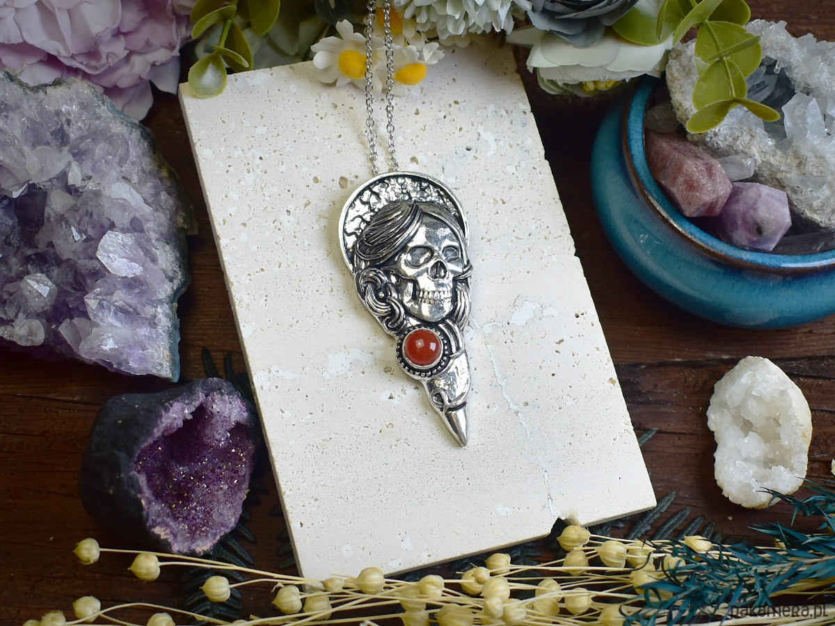 Miedziany posrebrzany ciężki wisior Dead Madonna z karneolem