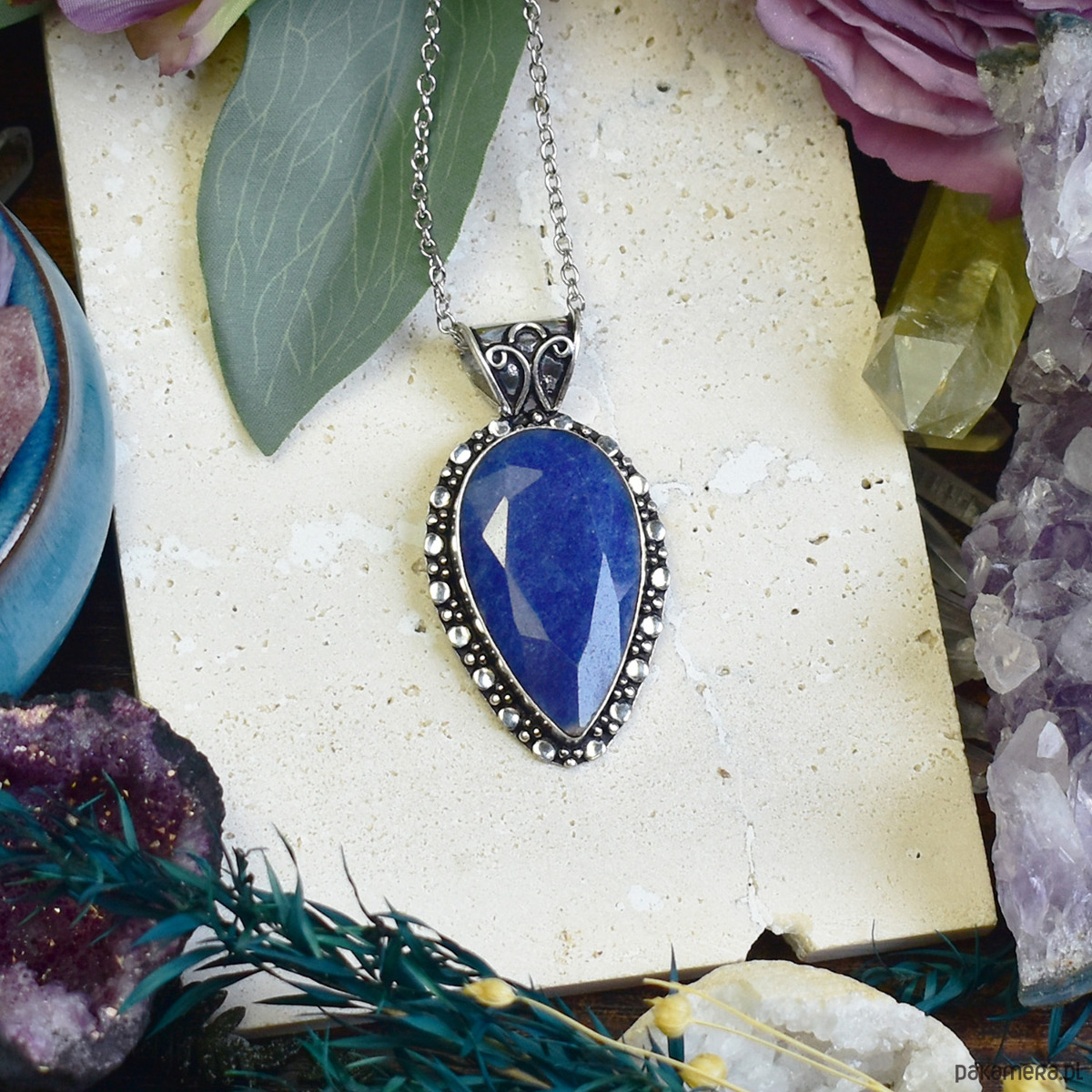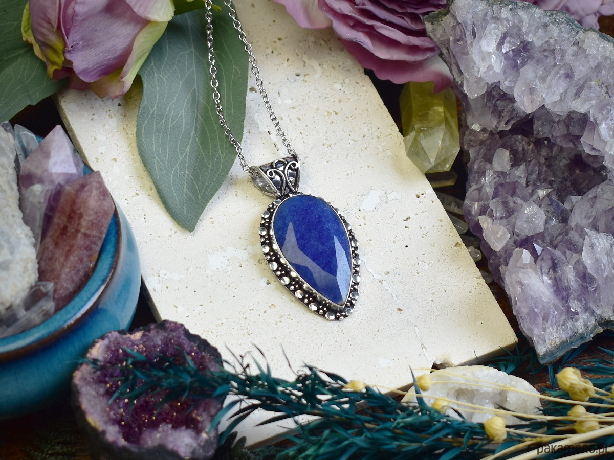 Wisiorek wykonany z miedzi, która została posrebrzona, ozdobiony syntetycznym szafirem. Tworzony tradycyjnymi technikami jubilerskimi, ten elegancki element biżuterii łączy w sobie nowoczesny design i klasyczne rzemiosło. Syntetyczny szafir, o intensywnej barwie, przyciąga wzrok i dodaje wyrafinowanego charakteru. Idealny wybór dla osób szukających subtelnej, ale wyjątkowej ozdoby, która podkreśli ich indywidualny styl.