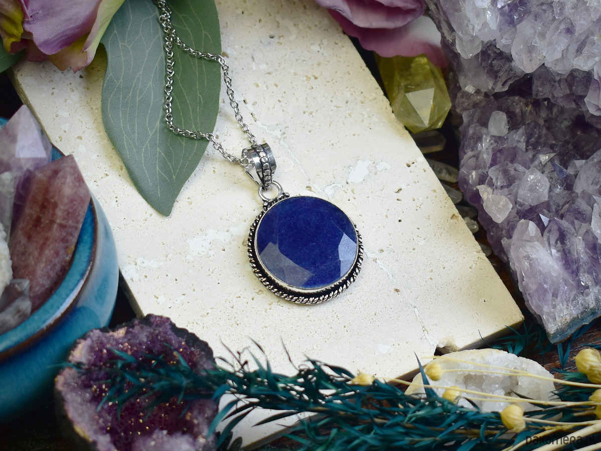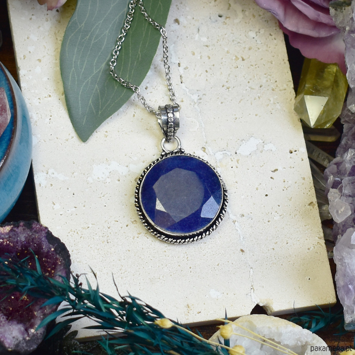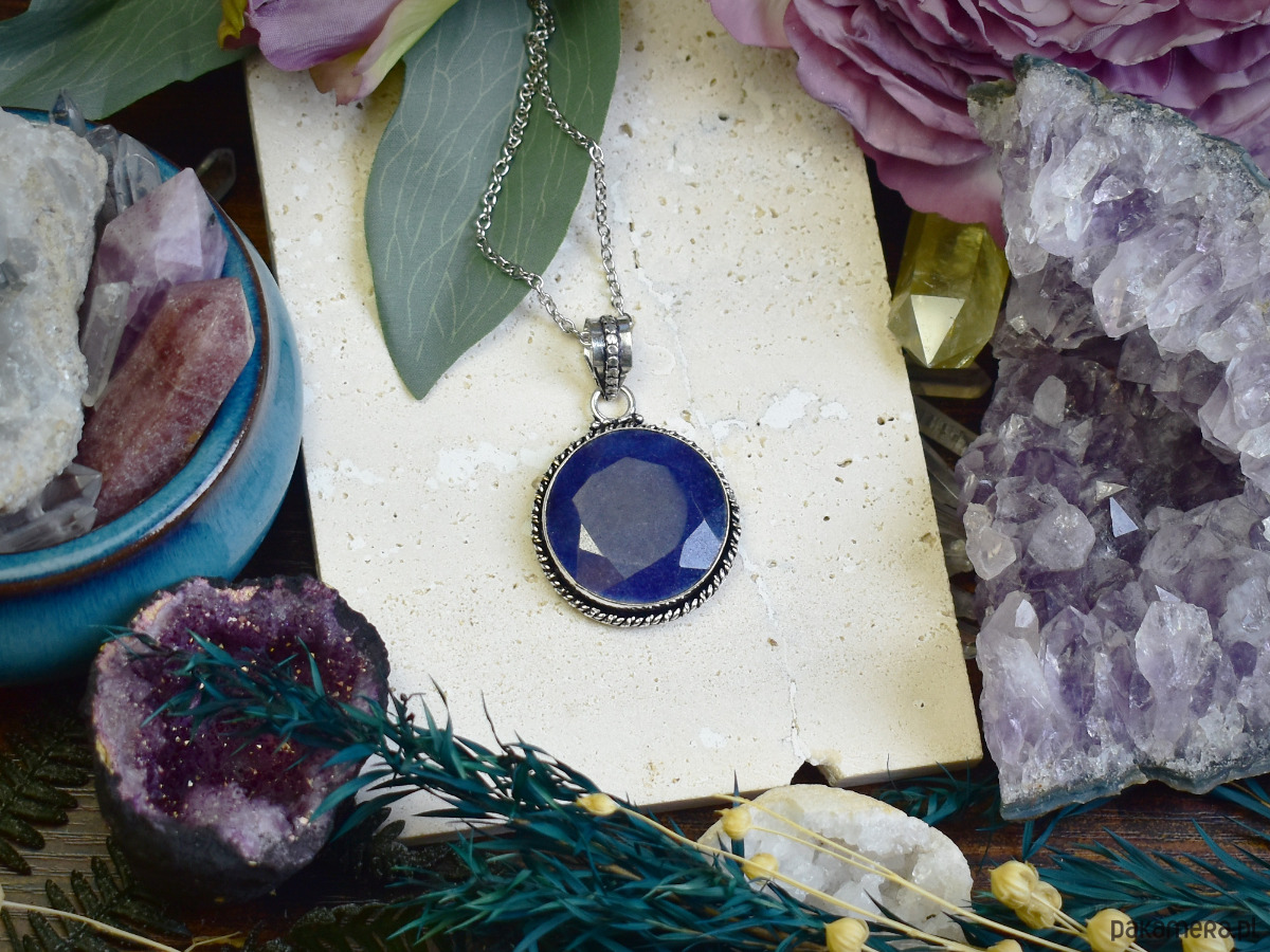 Miedziany posrebrzany wisiorek z szafirem syntetycznym