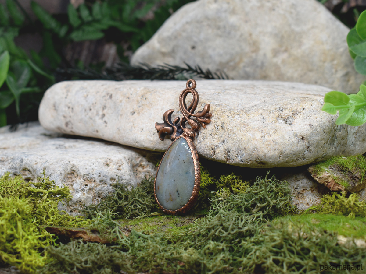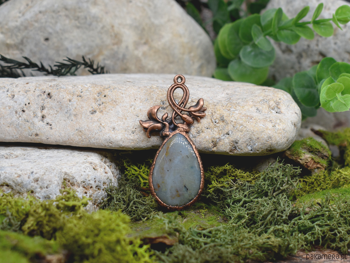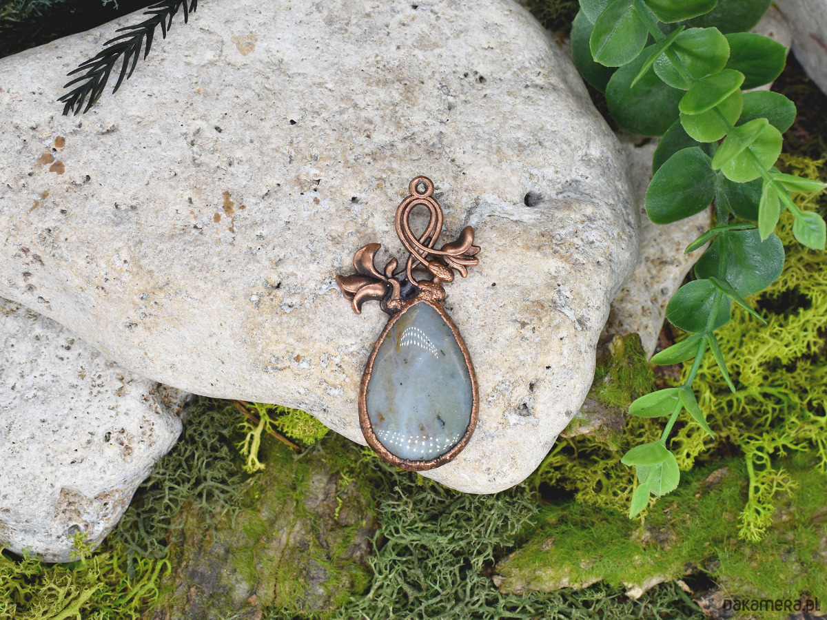 Ręcznie wykonany wisior z agatem indyjskim. Wisior został wykonany metodą elektroformowania miedzi.