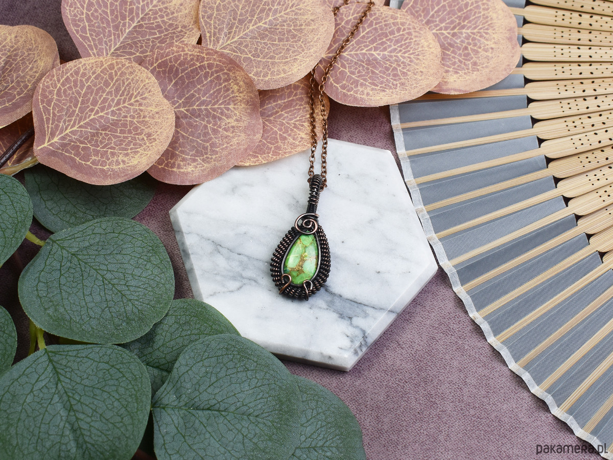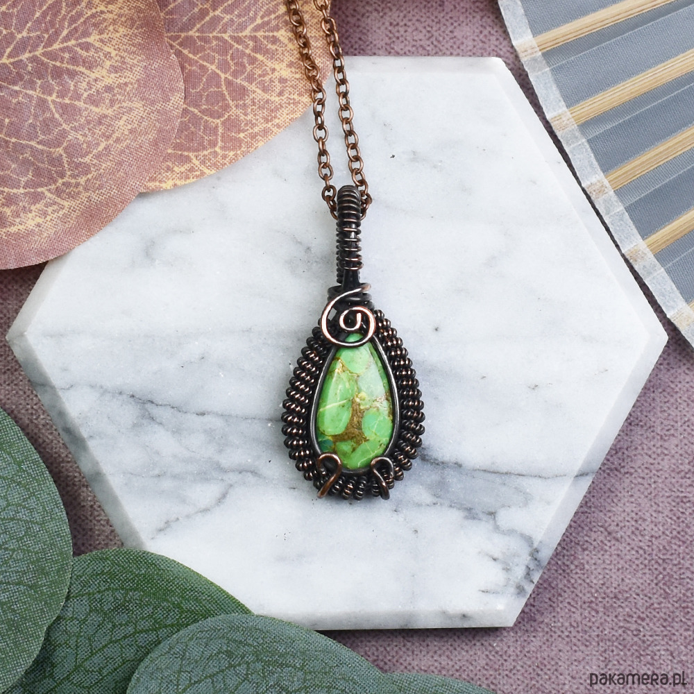 Miedziany wisiorek wire wrapping z jaspisem imperialnym #529