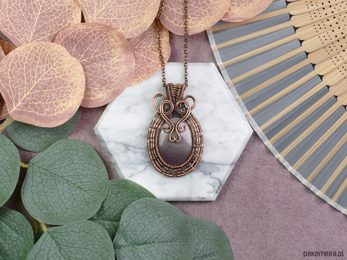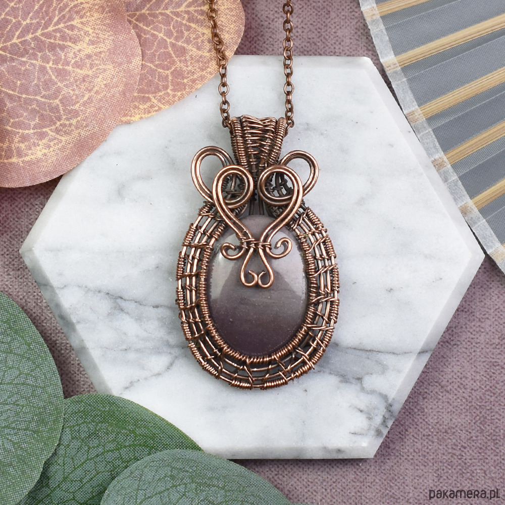 Miedziany wisiorek wire wrapping z mookaitem #540