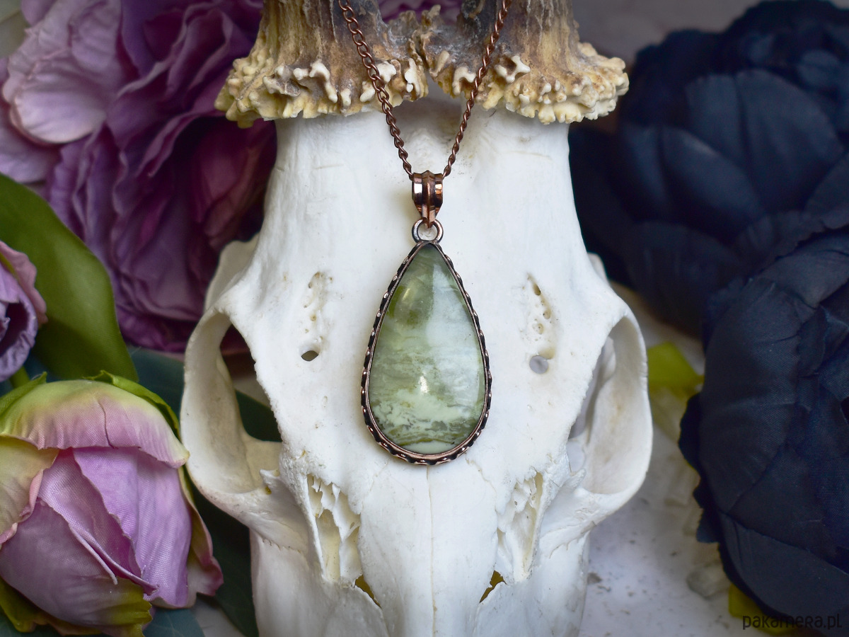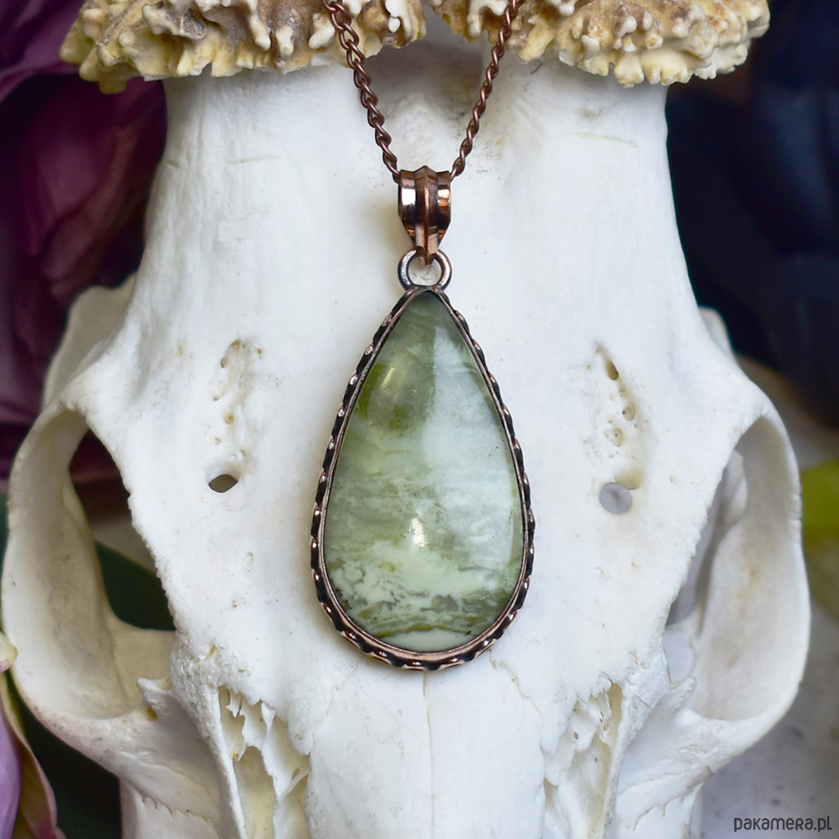 Miedziany wisiorek z Larsonitem w prostej ozdobnej oprawie