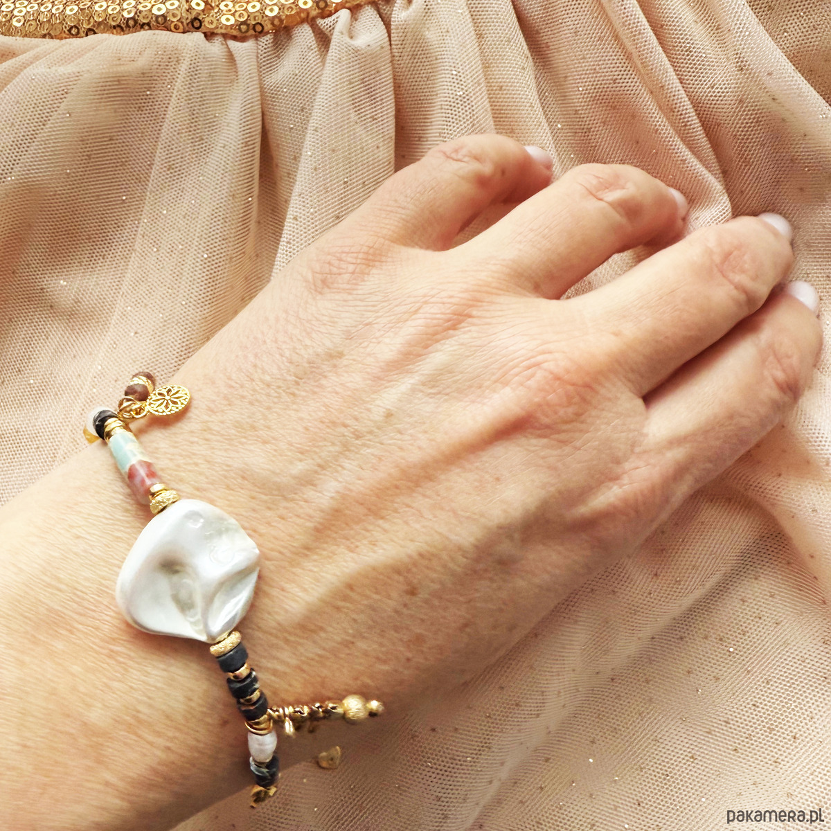 Ta bransoletka z naturalnych kamieni to opowieść o harmonii natury i kobiecej wyobraźni. Ręcznie tworzona z uważnością i sercem, nie jest jedynie ozdobą, lecz wyrazem indywidualnego stylu. Każdy element współgra tu z kolejnym, tworząc subtelną kompozycję pełną światła i ruchu.