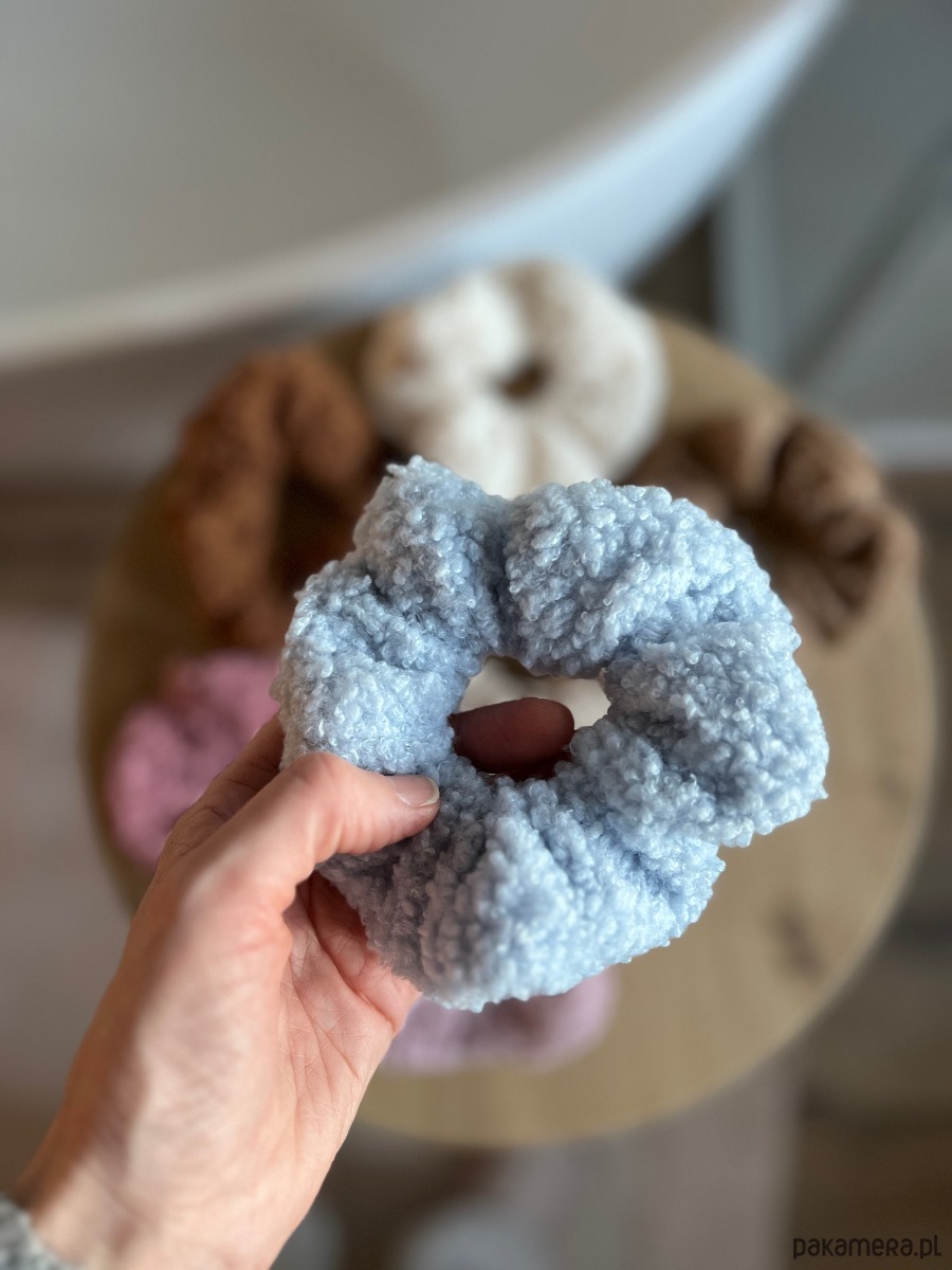 Scrunchie wykonana z miękkiego materiału typu baranek / teddy — przyjemna w dotyku, lekka i delikatna dla włosów. Świetnie sprawdzi się na co dzień, do domowych stylizacji, spacerów i zimowych outfitów.