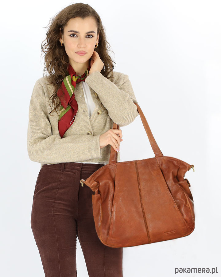 Miękka torebka skórzana shopperka na ramię -brąz camel