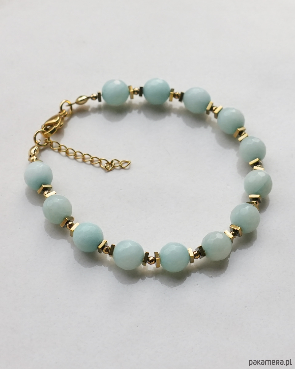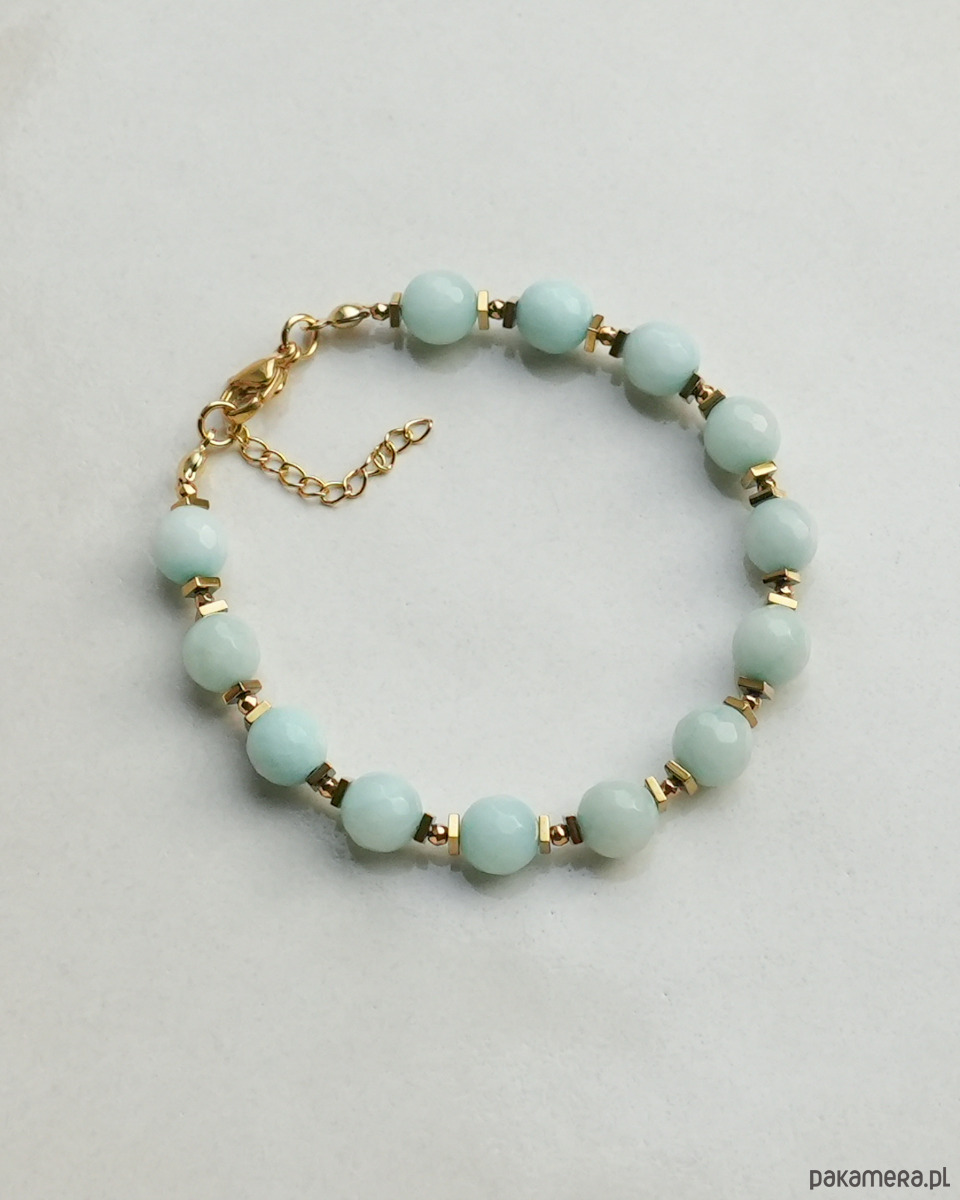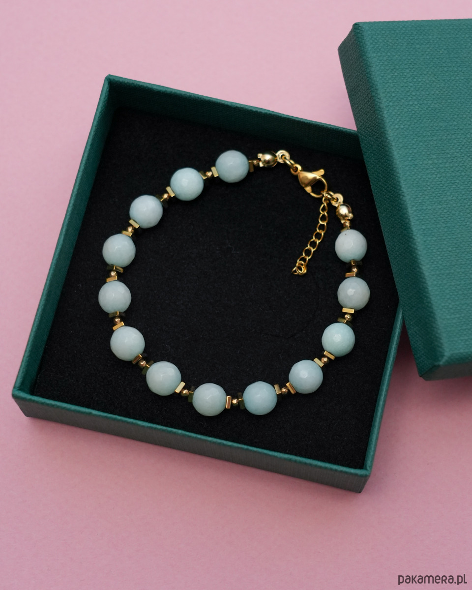 Bransoletka będzie się super prezentować zarówno solo, jak i w połączeniu z innymi bransoletkami z kamieni w różnych kolorach i złotymi.