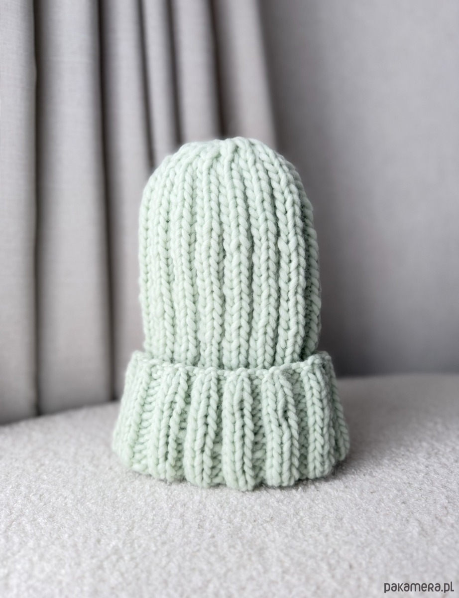 Czapka w kolorze zielonym, wykonana z naturalnej włóczki 100% wełna
