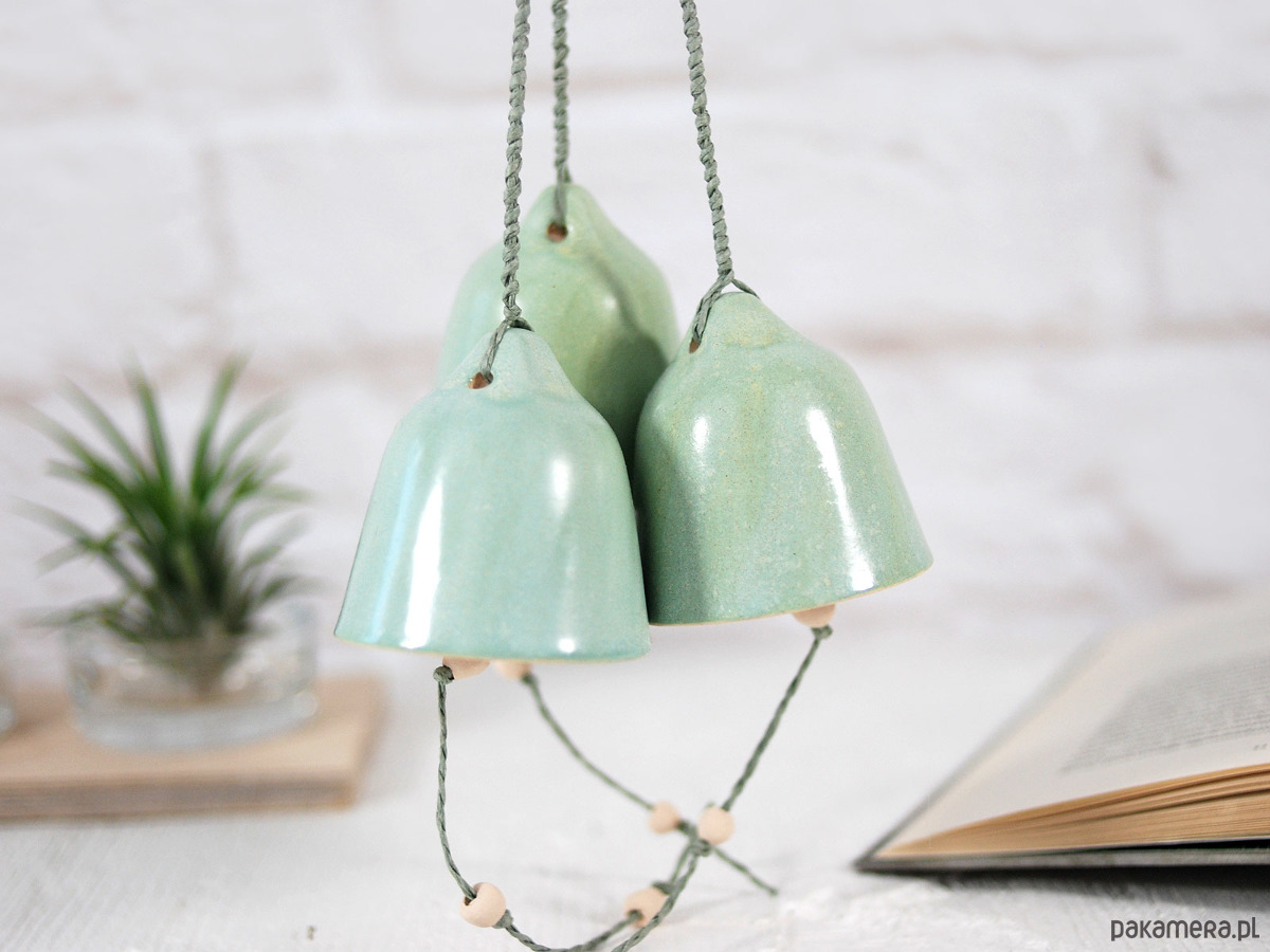 Zestaw zawiera 3 ręcznie robione i malowane, ceramiczne dzwonki.