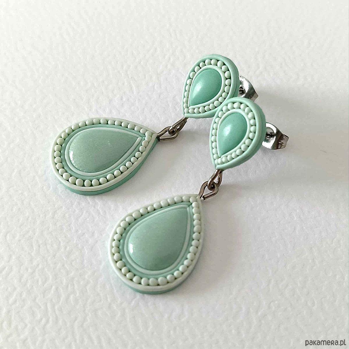 Miętowe kolczyki handmade, eleganckie kolczyki krople
