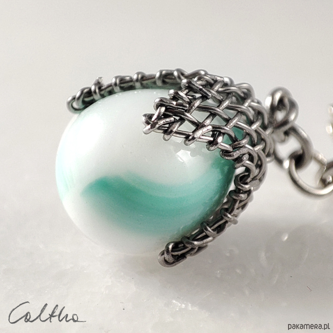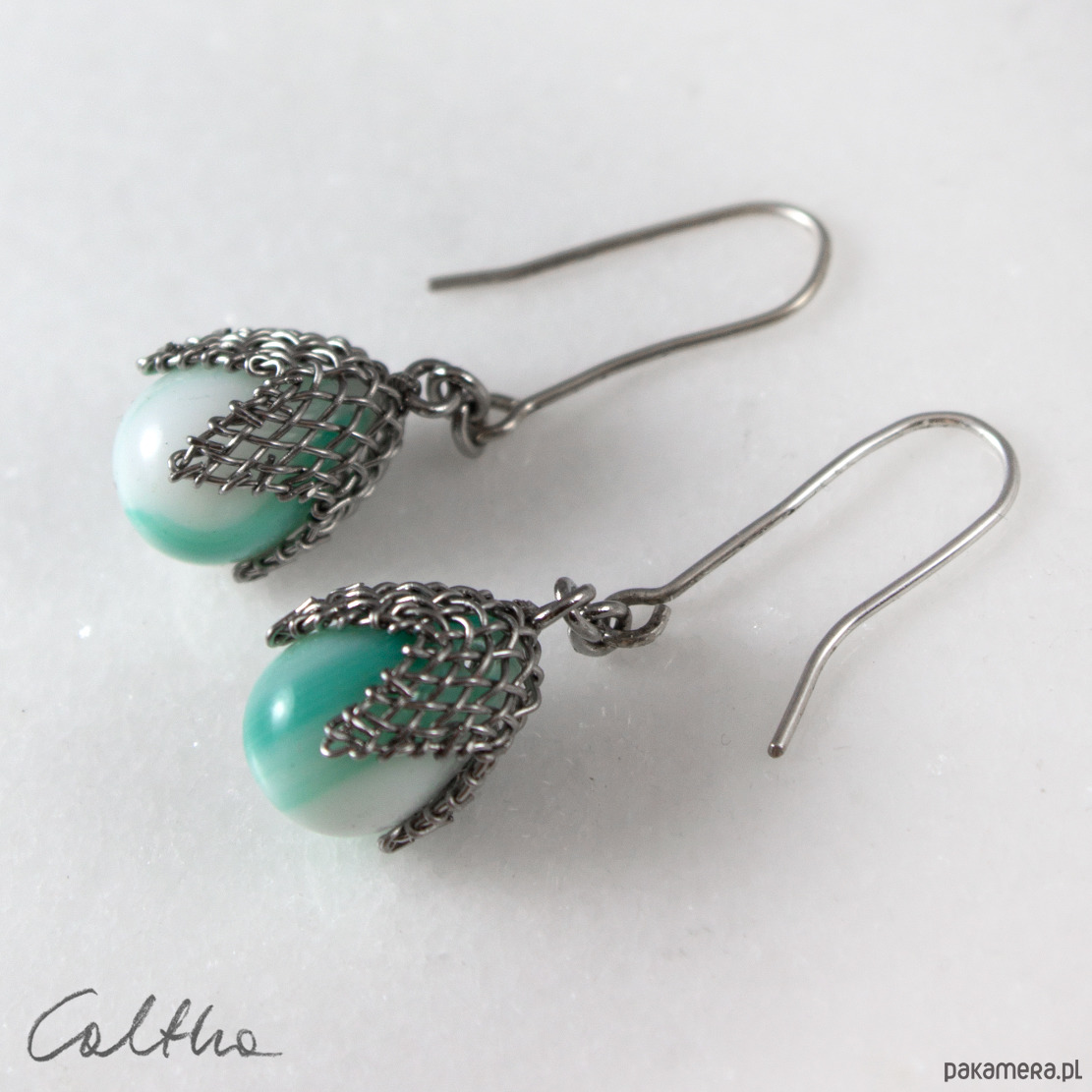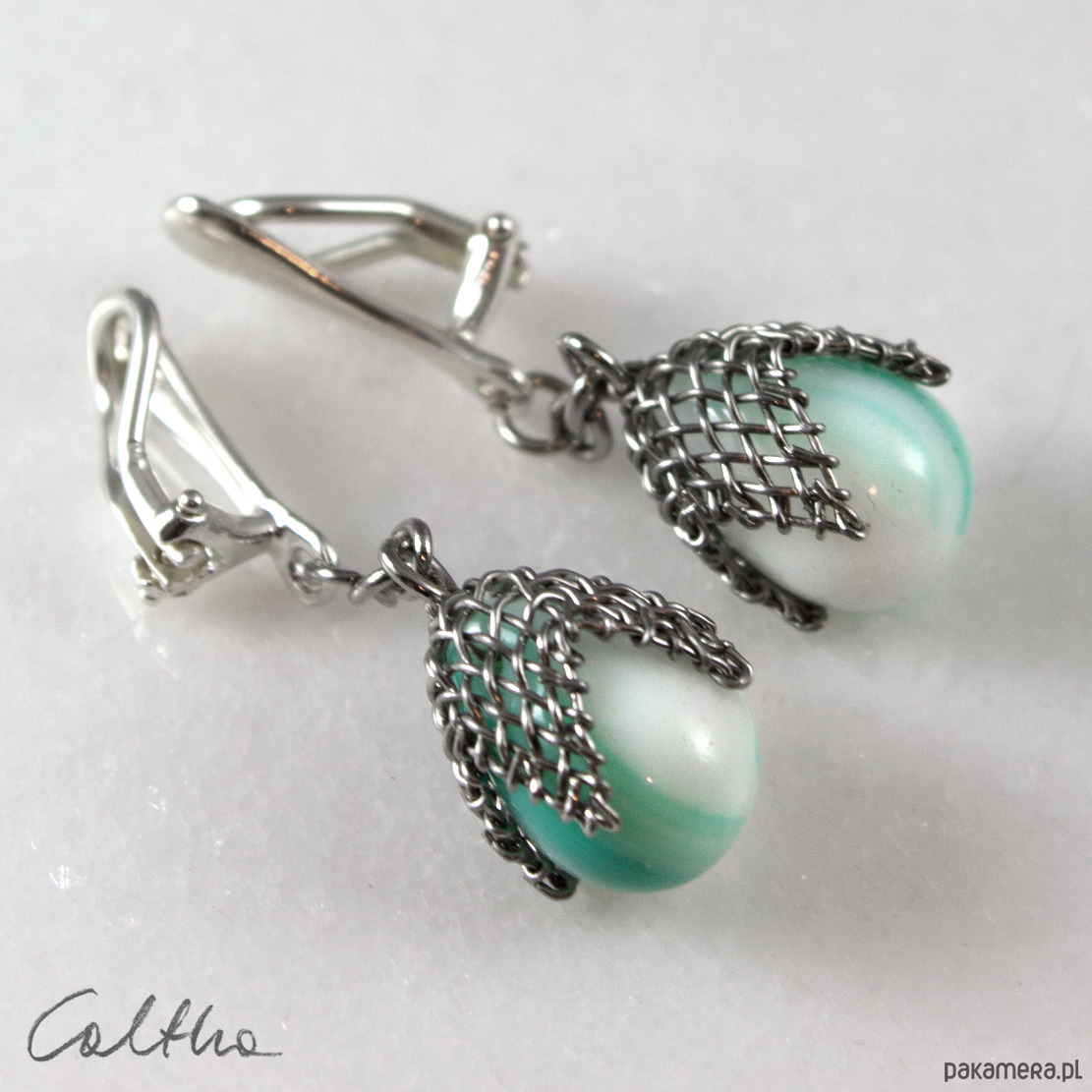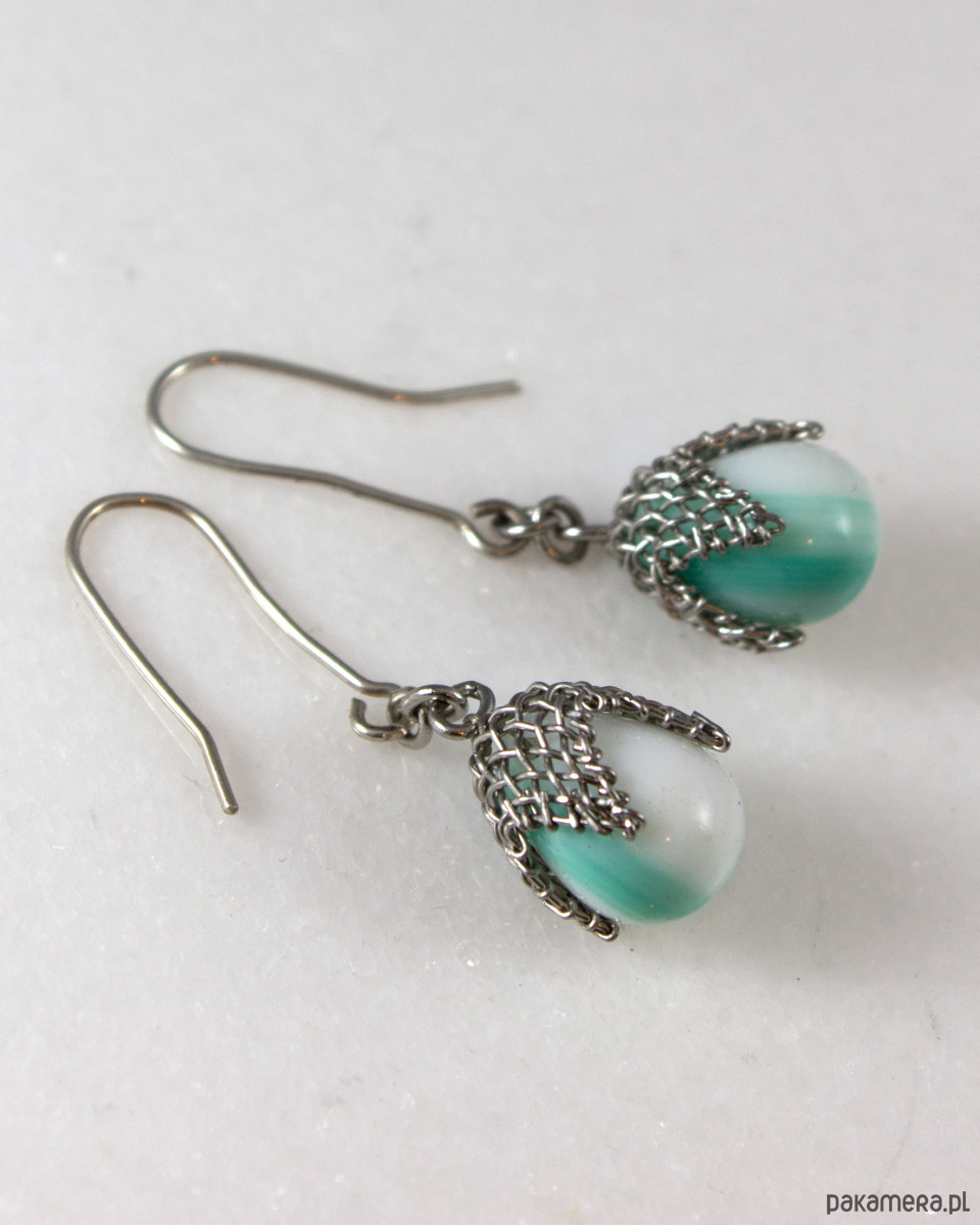 Miętowe prążki w siateczce - kolczyki (lub klipsy)
