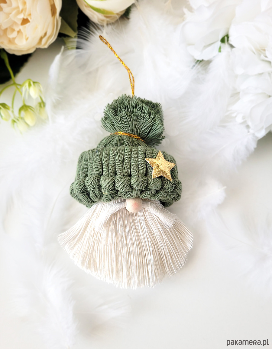Uroczy świąteczny Mikołaj z czapką w kolorze szałwiowym. Broda ecru.